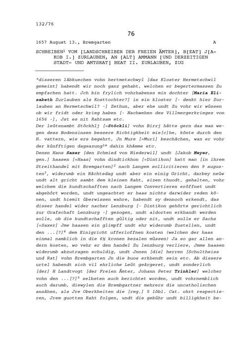 Schreiben von Beat Jakob I. Zurlauben, Landschreiber der Freien Ämter, an Beat II....