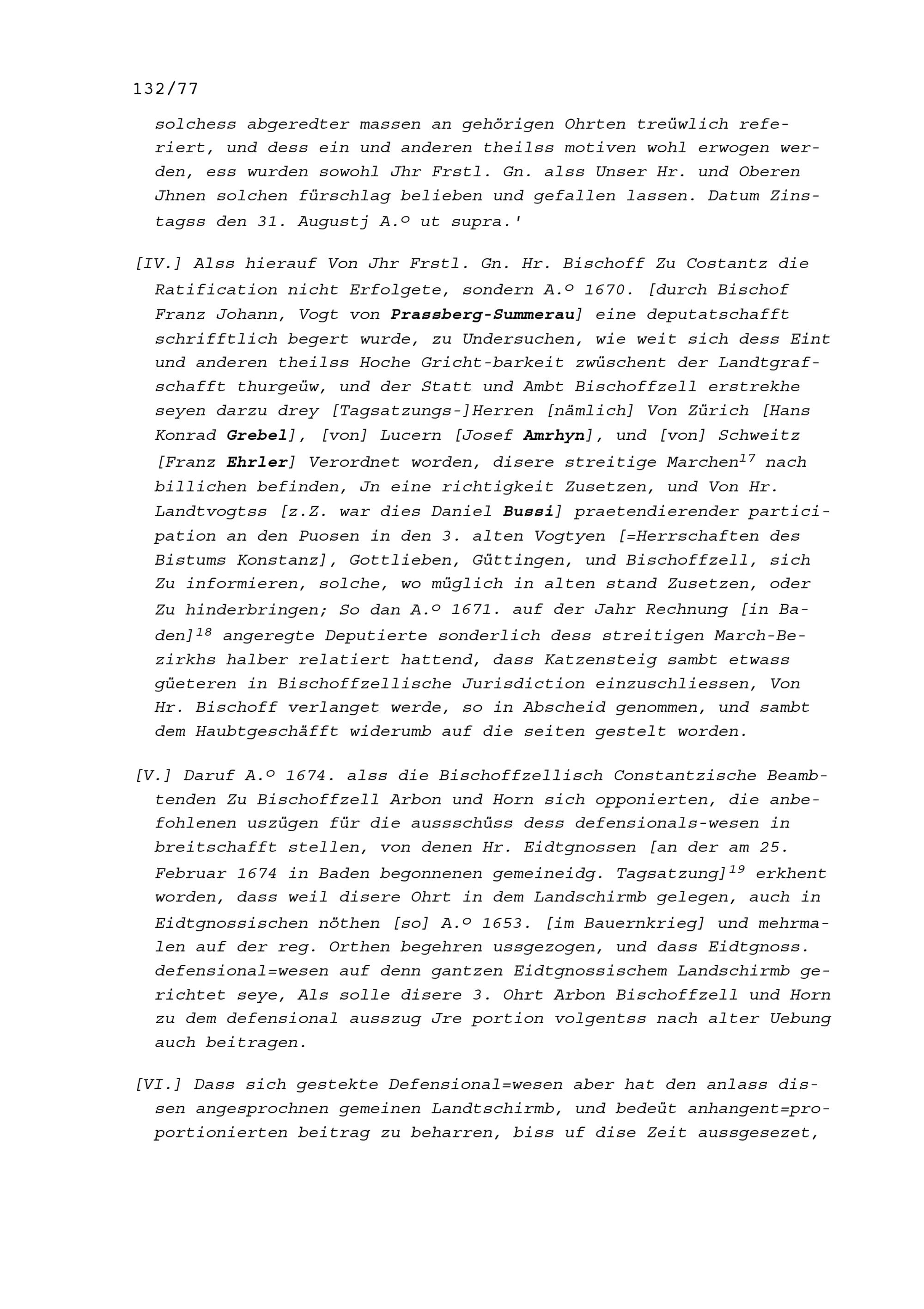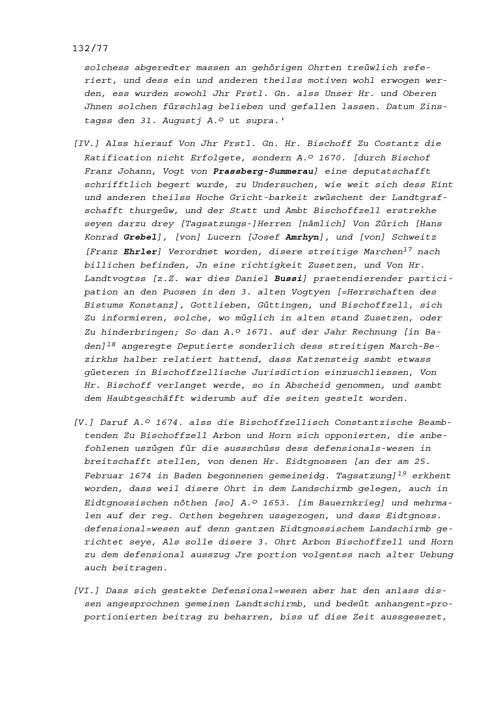 Mannschaftsrechte zu Arbon, Bischofszell und Horn, alles Herrschaften des Bistums Konstanz von 1509 bis 1694, hauptsächlich 1596, 1627, 1670 und 1674 (Auszug) wegen des Streits zwischen Marquard Rudolf Rodt von Bausmannshausen, Bischof von Konstanz und den den Thurgau regierenden Sieben Orte