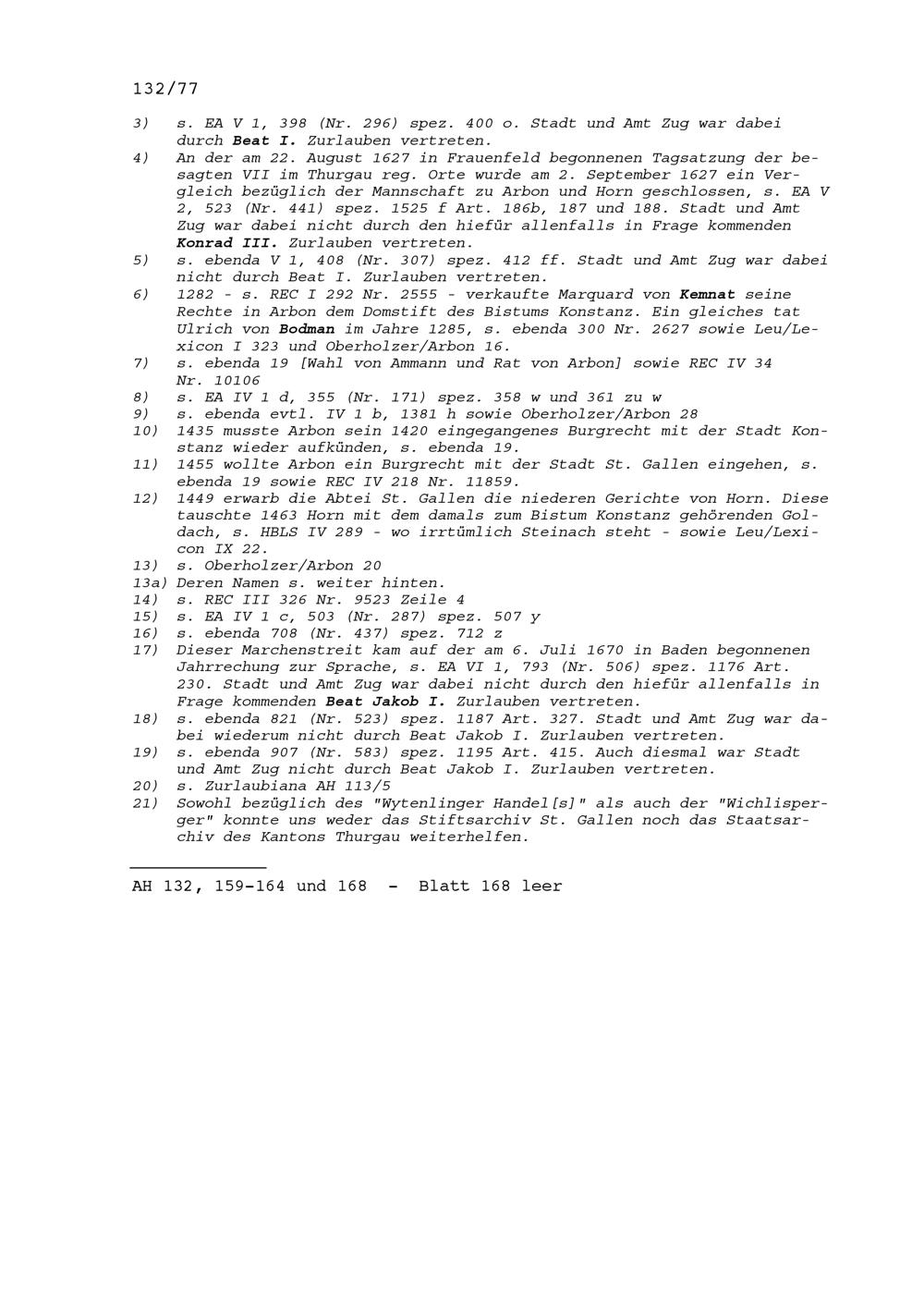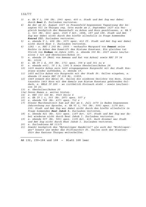 Mannschaftsrechte zu Arbon, Bischofszell und Horn, alles Herrschaften des Bistums Konstanz von 1509 bis 1694, hauptsächlich 1596, 1627, 1670 und 1674 (Auszug) wegen des Streits zwischen Marquard Rudolf Rodt von Bausmannshausen, Bischof von Konstanz und den den Thurgau regierenden Sieben Orte