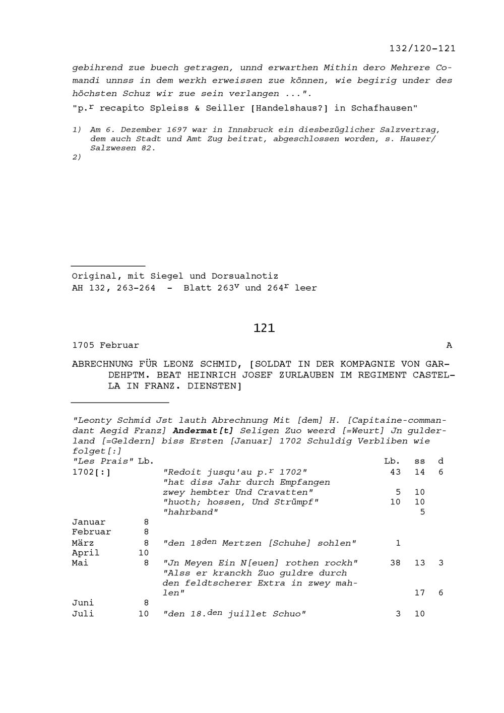 Abrechnung für Leonz Schmid, Soldat in der Kompanie von Beat Heinrich Josef Zurlauben, Gardehauptmann, im Regiment Castella in französischen Diensten