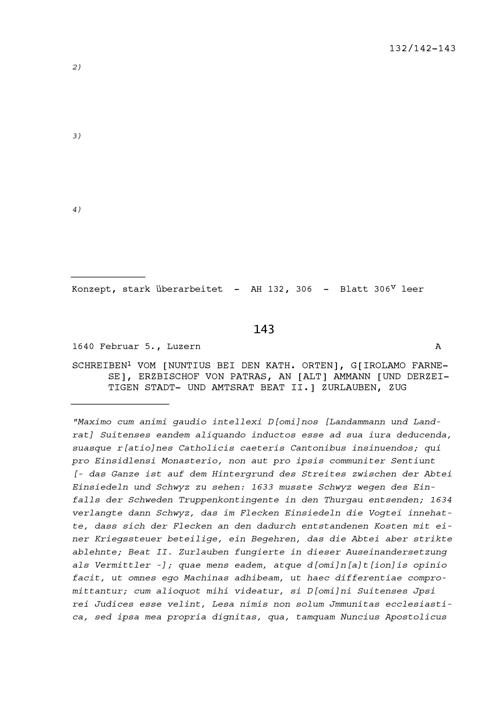 Schreiben von Girolamo Farnese, Nuntius und Erzbischof von Patras, an Beat II. Zurlauben,...