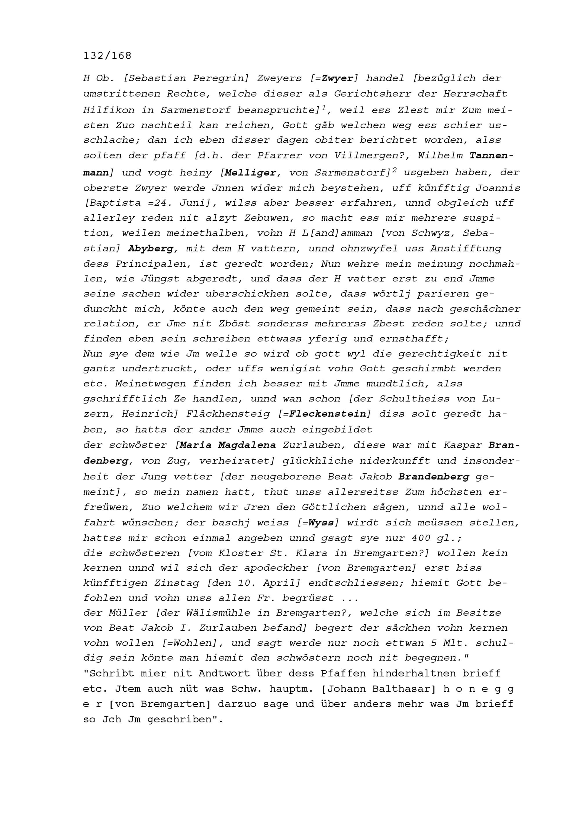 Schreiben von Beat Jakob I. Zurlauben, Landschreiber der Freien Ämter, an Beat II....