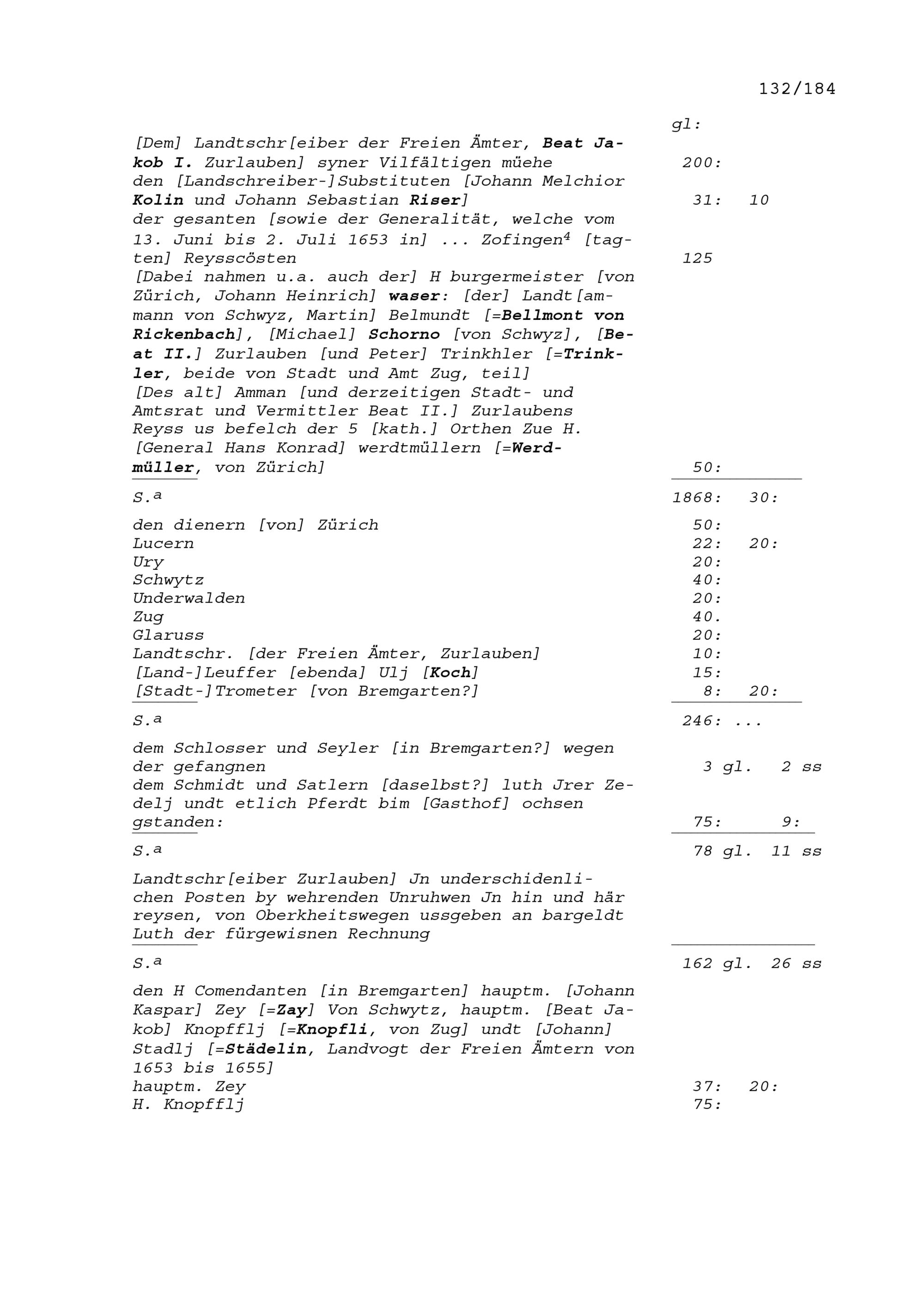 Zehrkosten der Tagsatzungsgesandten der in den Freien Ämter regierenden Sieben Orte in Zusammenhang mit dem Bauernkrieg