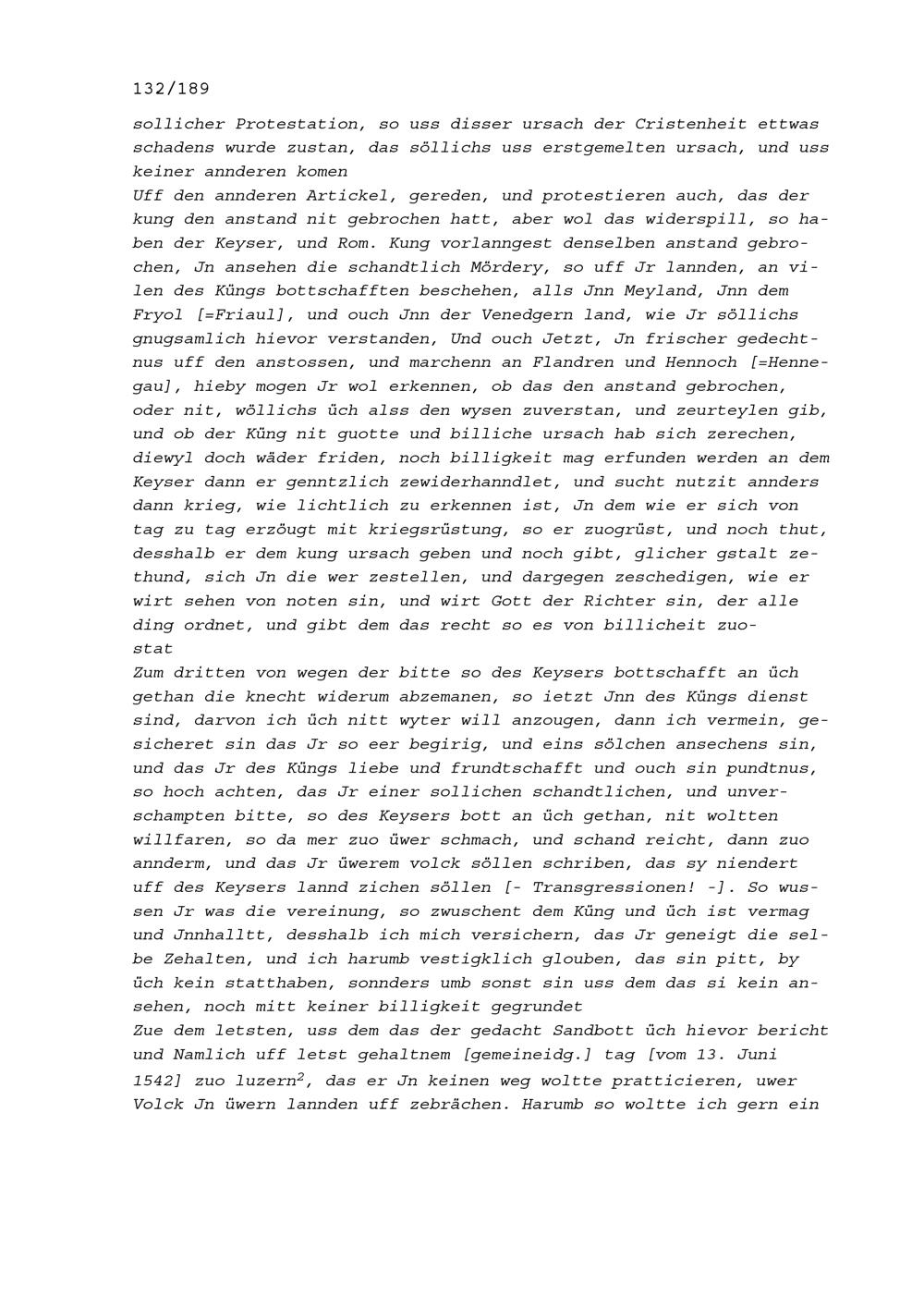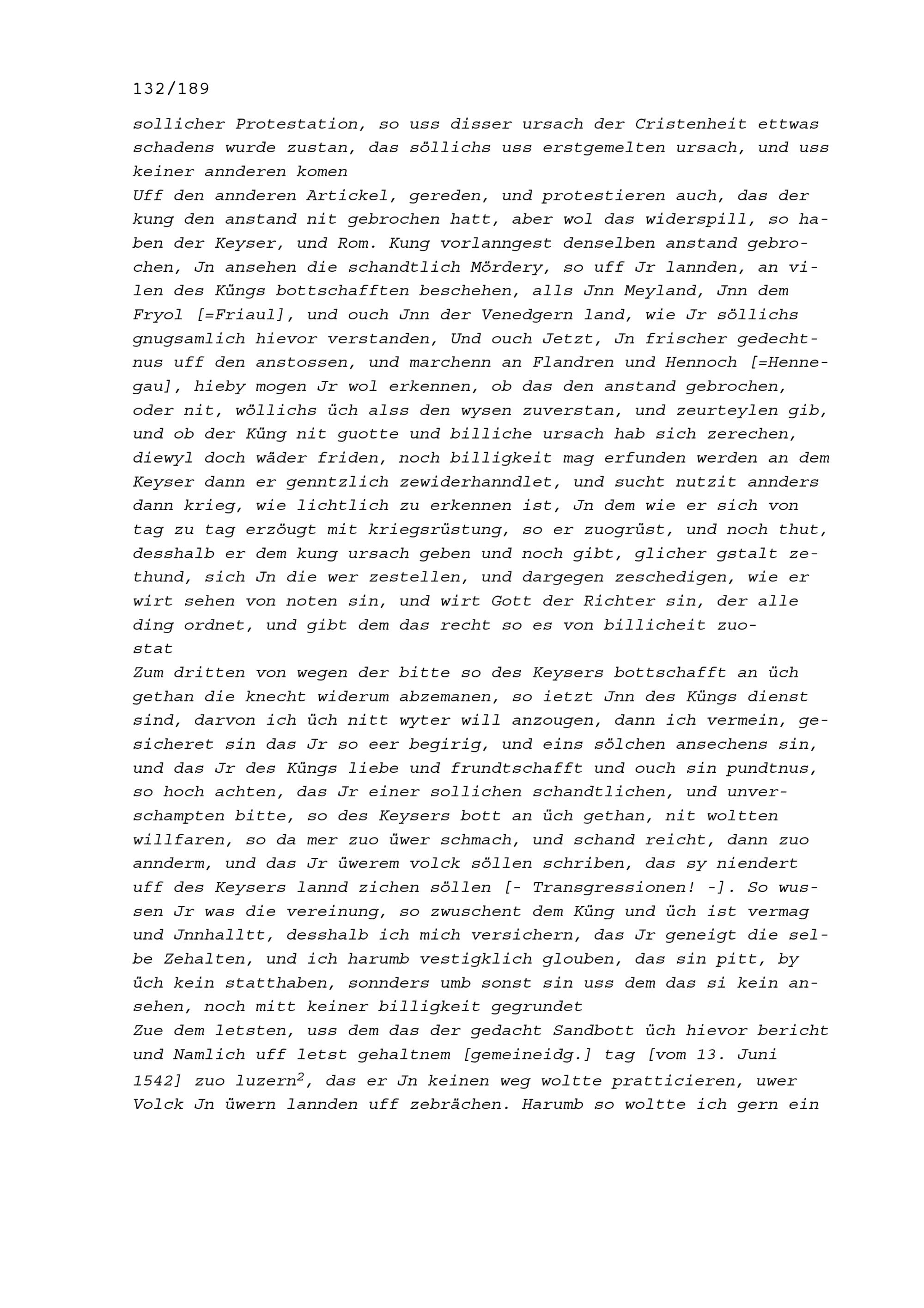 Vortrag von Louis d'Augerant, Sieur de Boisrigaut, Ambassador von Frankreich, anlässlich der am 19. Juni 1542 begonnenen Jahrrechnung in Baden