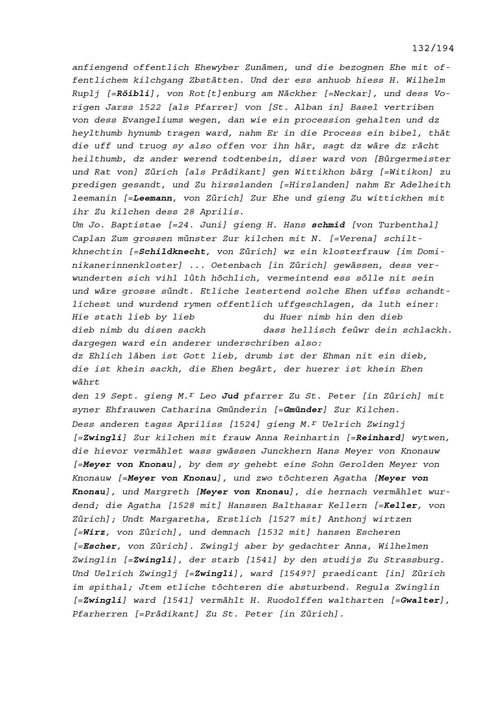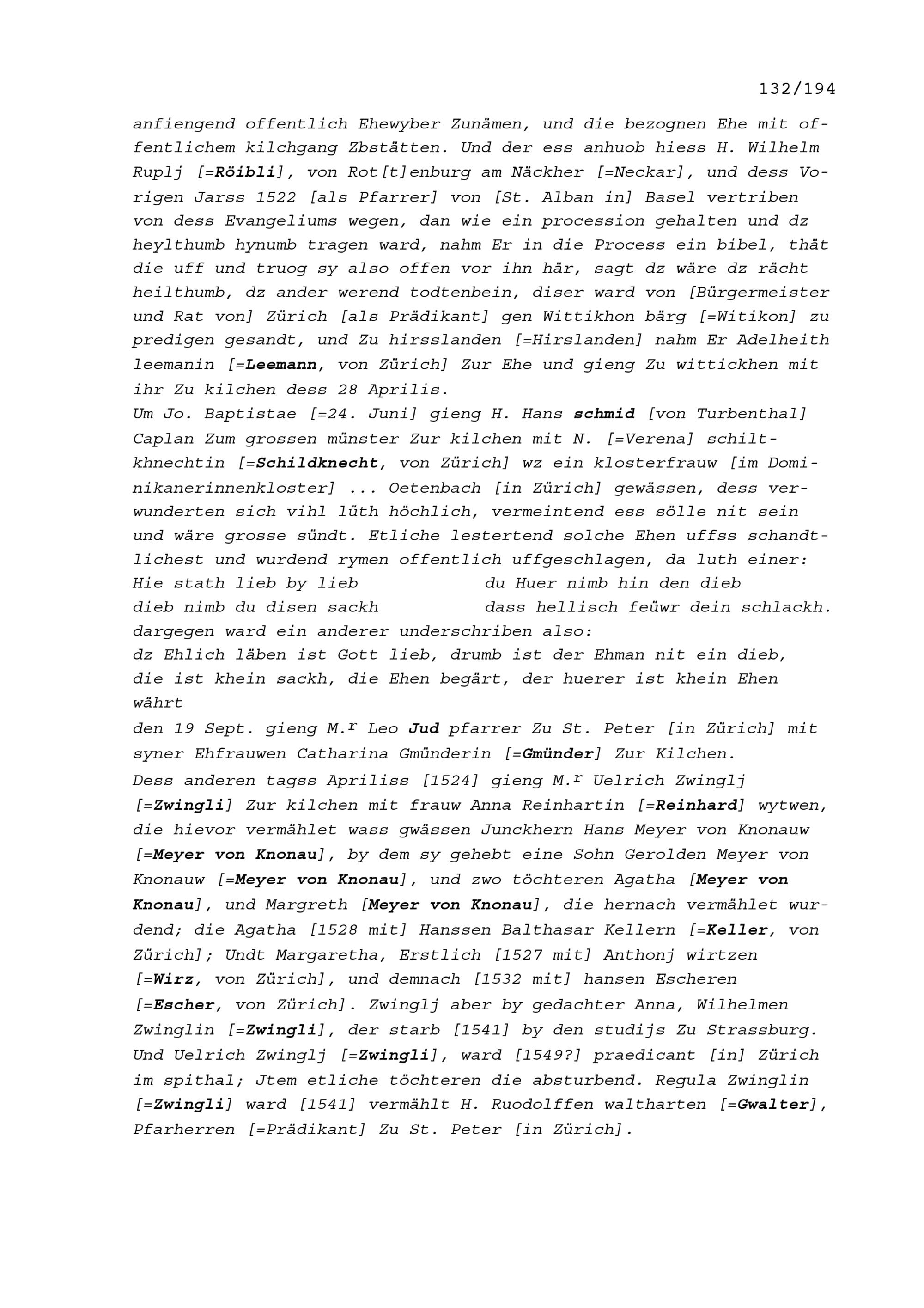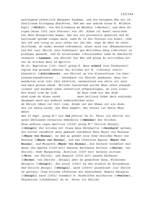 Verheiratungen verschiedener Zürcher Geistlicher während der Reformation