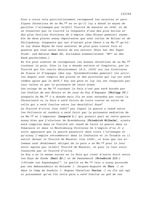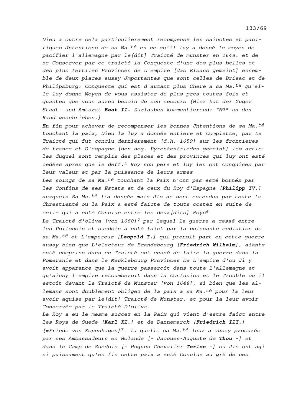 Vortrag Jean de la Barde, Ambassador von Frankreich, gehalten anlässlich der am 4. Juli 1660 begonnenen Jahrrechnung in Baden