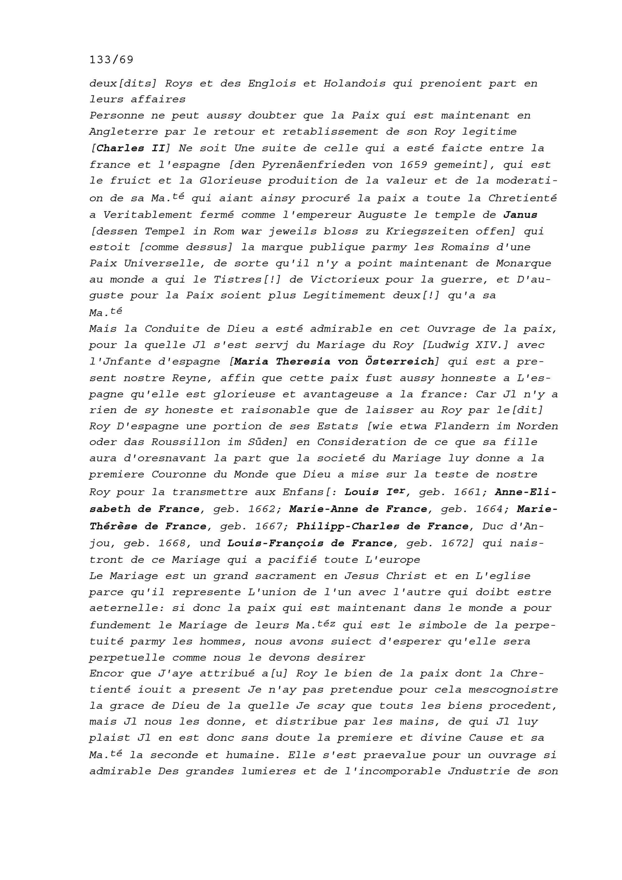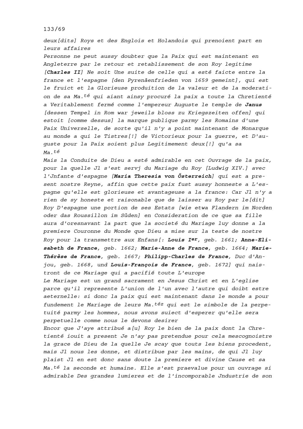 Vortrag Jean de la Barde, Ambassador von Frankreich, gehalten anlässlich der am 4. Juli 1660 begonnenen Jahrrechnung in Baden