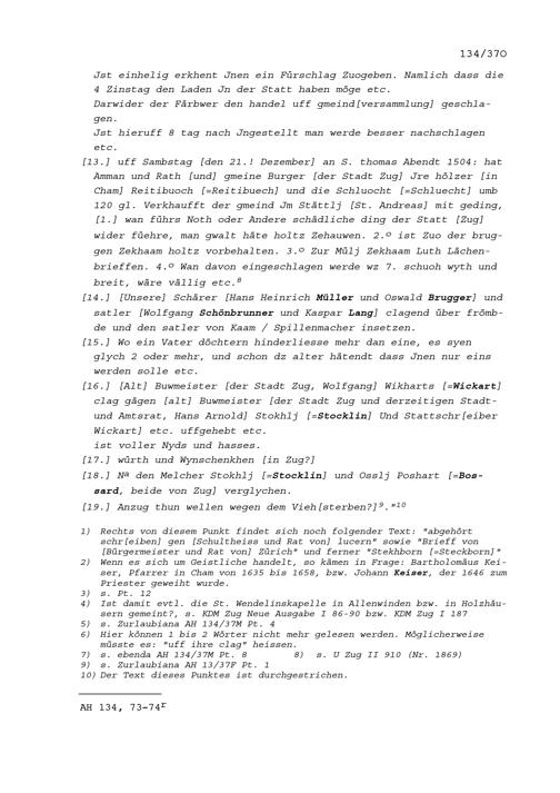 Notiz von Beat II. Zurlauben, Stabführer der Stadt Zug, über die Sitzung des Stadtrats vom 7. April 1646
