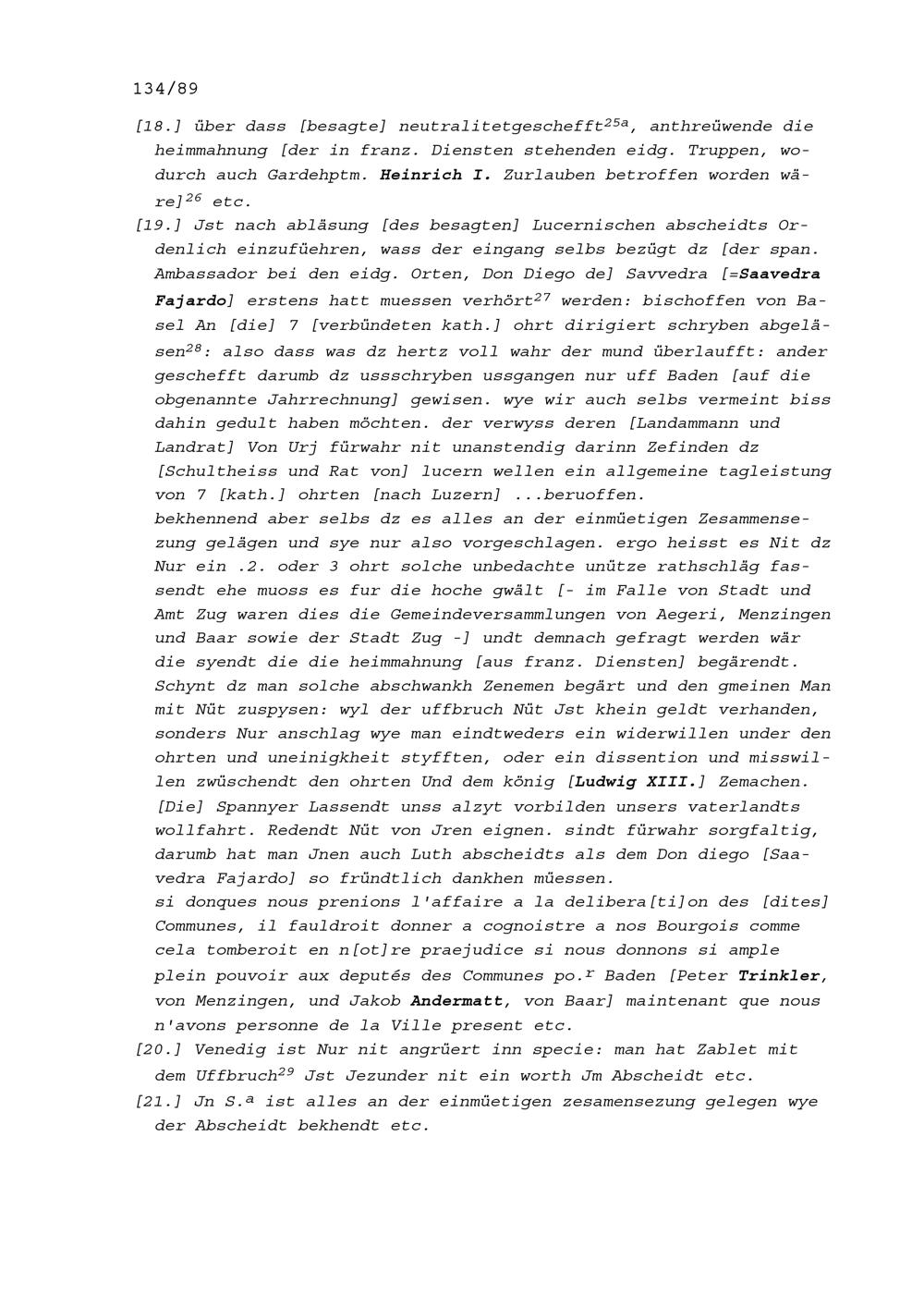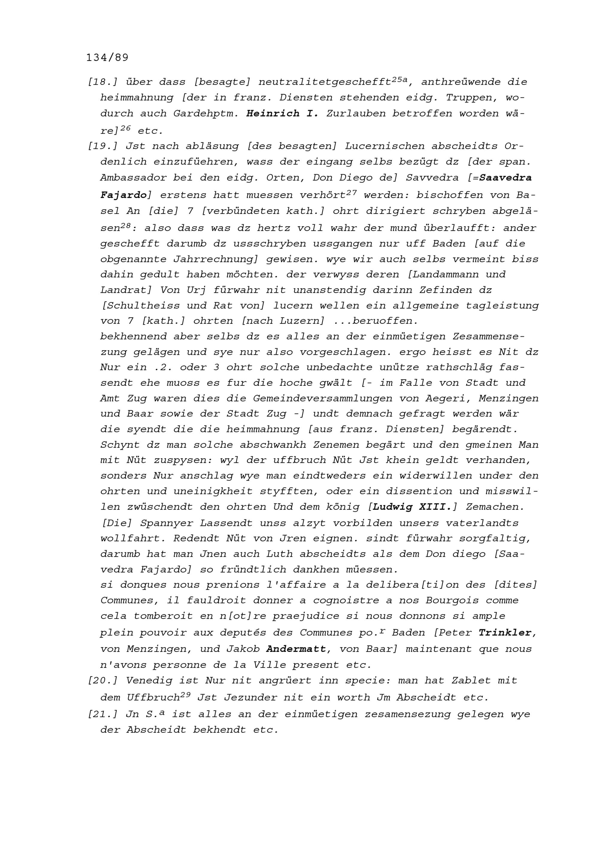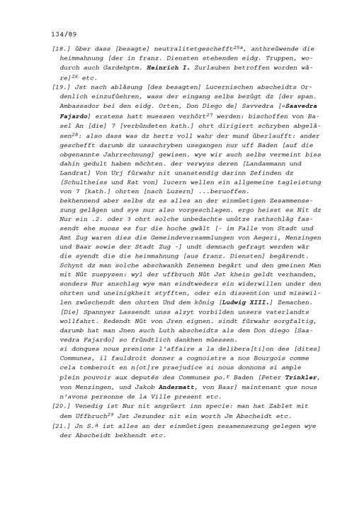 Notiz von Beat II. Zurlauben, Ammann von Stadt und Amt Zug, über die Sitzung des...