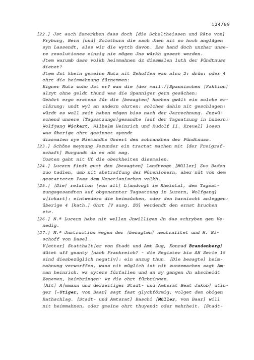 Notiz von Beat II. Zurlauben, Ammann von Stadt und Amt Zug, über die Sitzung des...