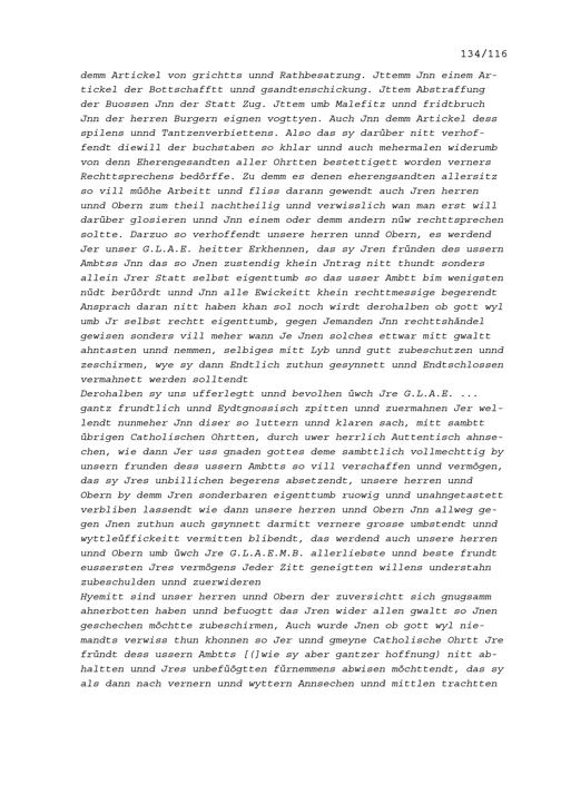 Vortrag vor den Katholischen Orten Uri, Schwyz, und Unterwalden am 21. Januar 1609 in Schwyz von Konrad III. Zurlauben, Gesandte der Stadt Zug, im Beisein von Melchior Brandenberg, Hauptmann, und von Hans Jakob Letter betreffend den