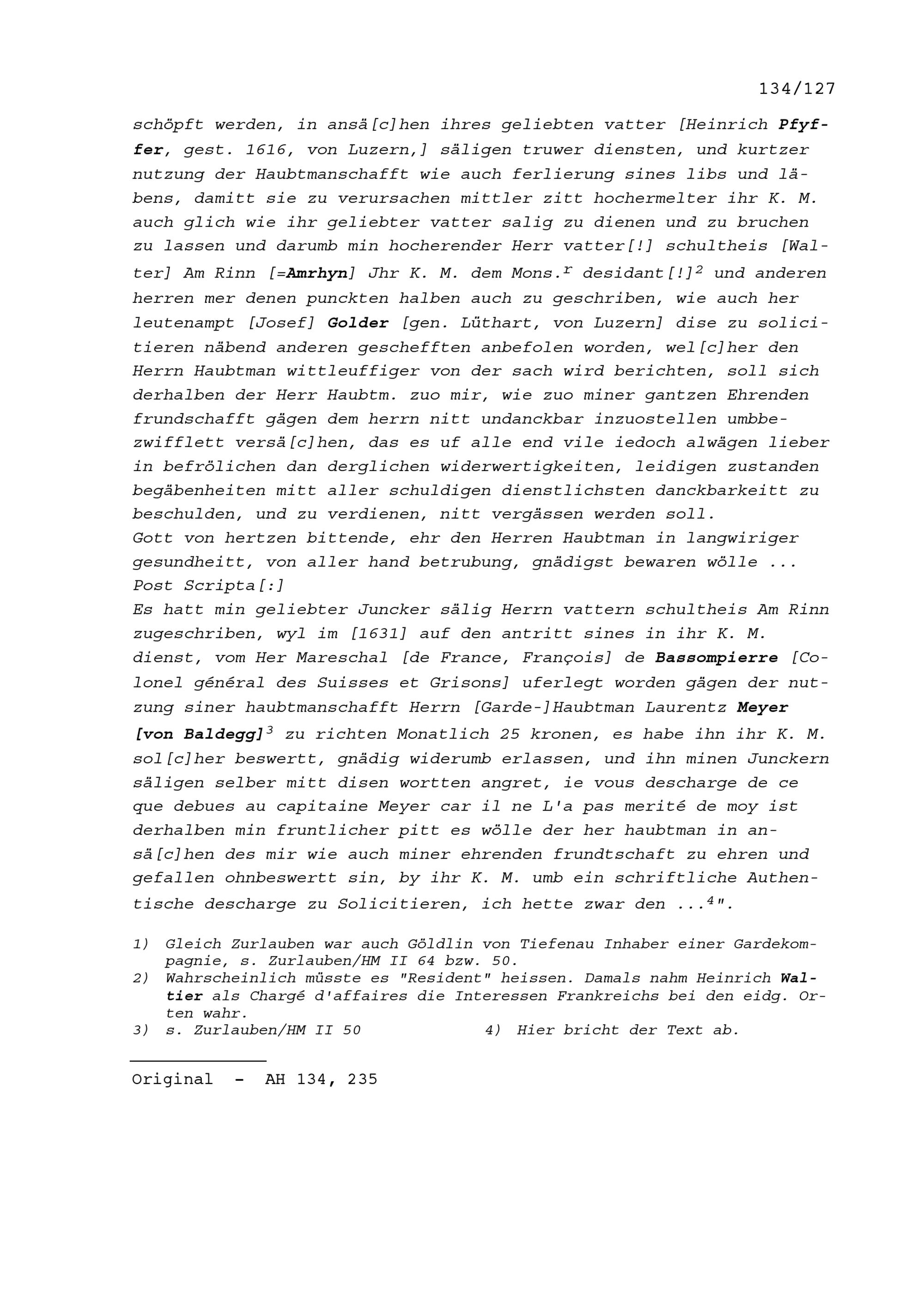 Schreiben von Maria Margaretha Pfyffer, Witwe von Johann Renward Göldlin von Tiefenau,...