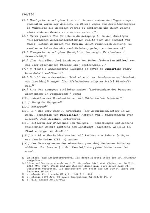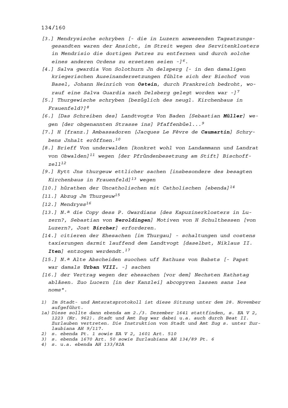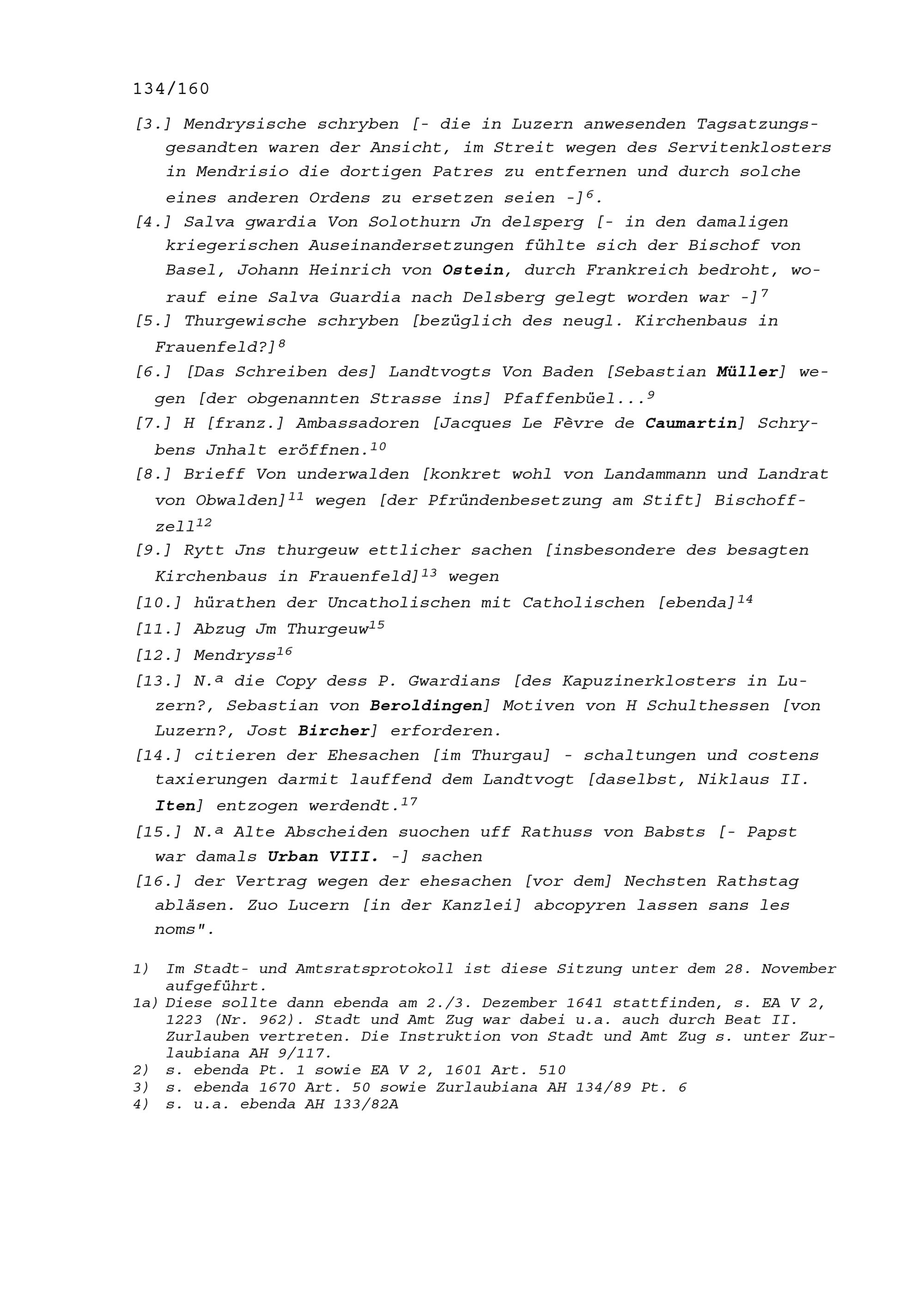 Notiz von Beat II. Zurlauben, Ammann von Stadt und Amt Zug, über die Sitzung des Stadt- und Amtrats vom 29. November 1641