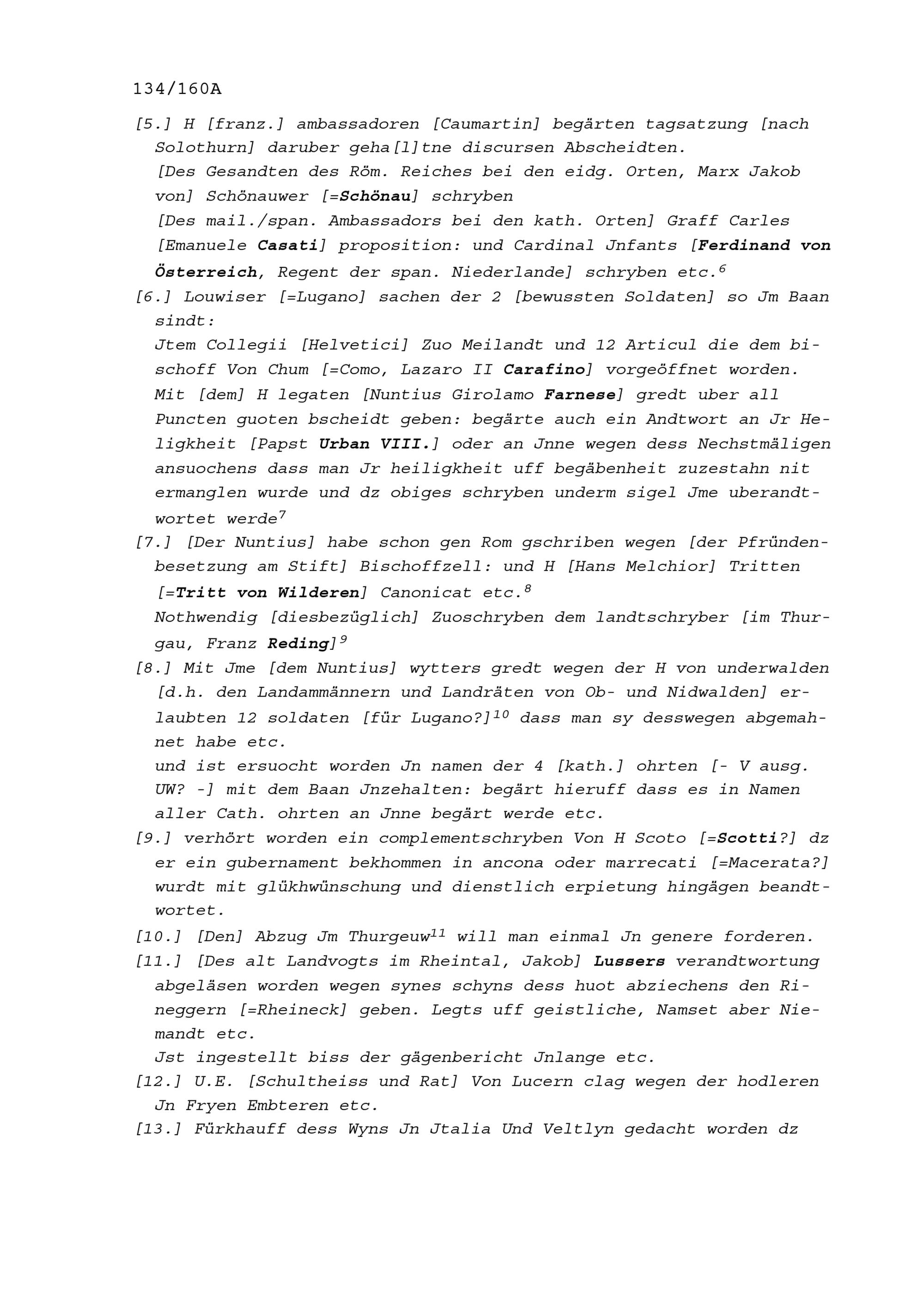Notiz von Beat II. Zurlauben, Ammann von Stadt und Amt Zug, über die Sitzung des Stadt- und Amtrats vom 5. Dezember 1641