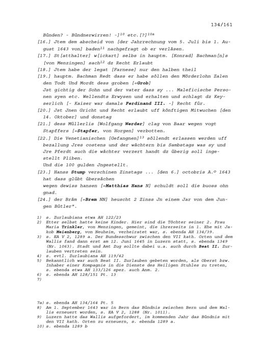 Notiz von Beat II. Zurlauben, Ammann von Stadt und Amt Zug, über die Sitzung des Stadt- und Amtrats vom 8. Oktober 1643