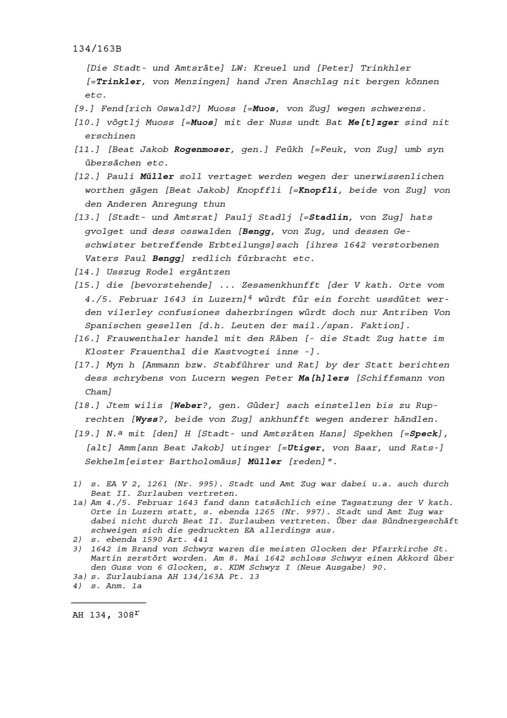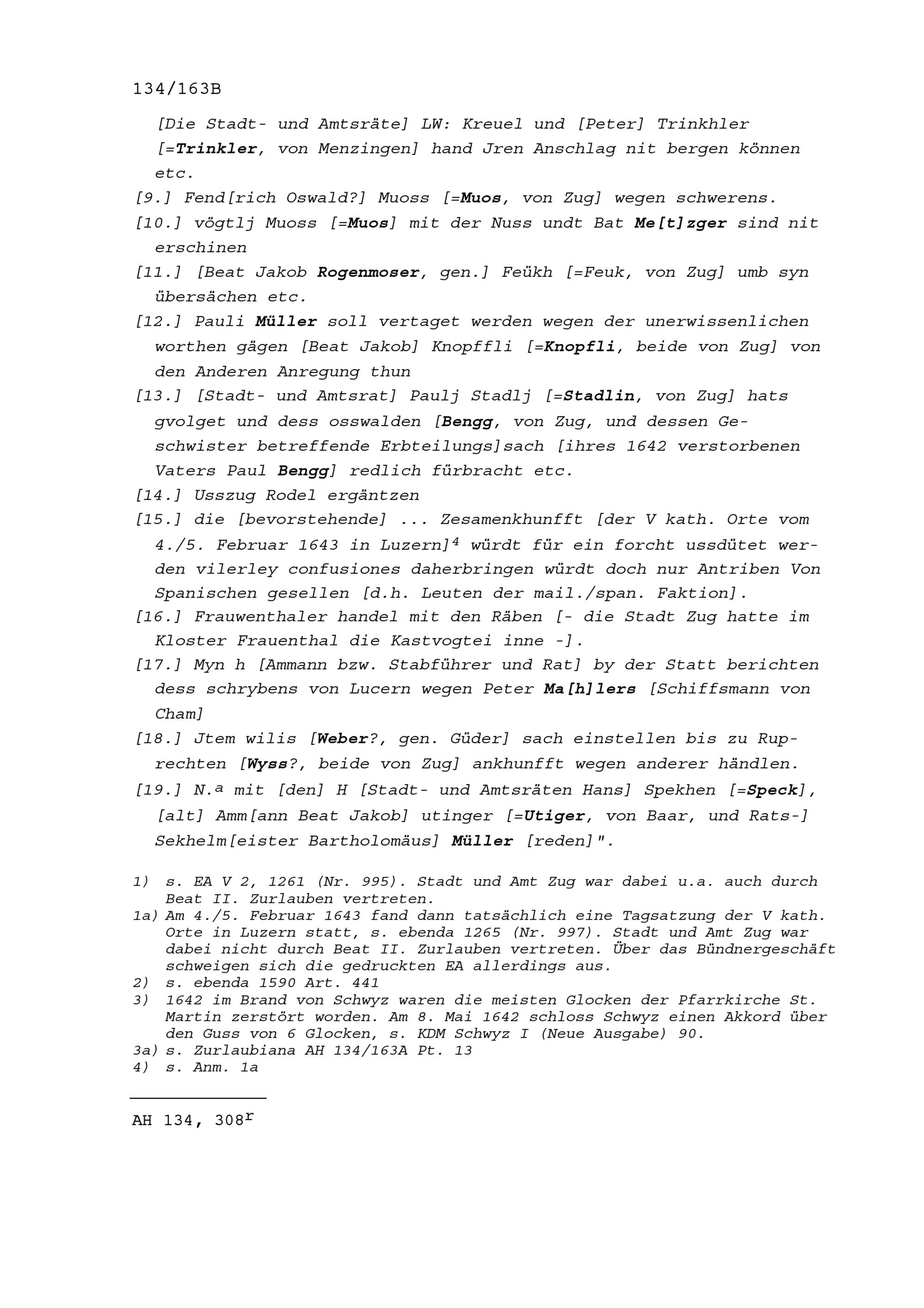 Notiz von Beat II. Zurlauben, Ammann von Stadt und Amt Zug, über die Sitzung des Stadt- und Amtrats vom 26. Januar 1643