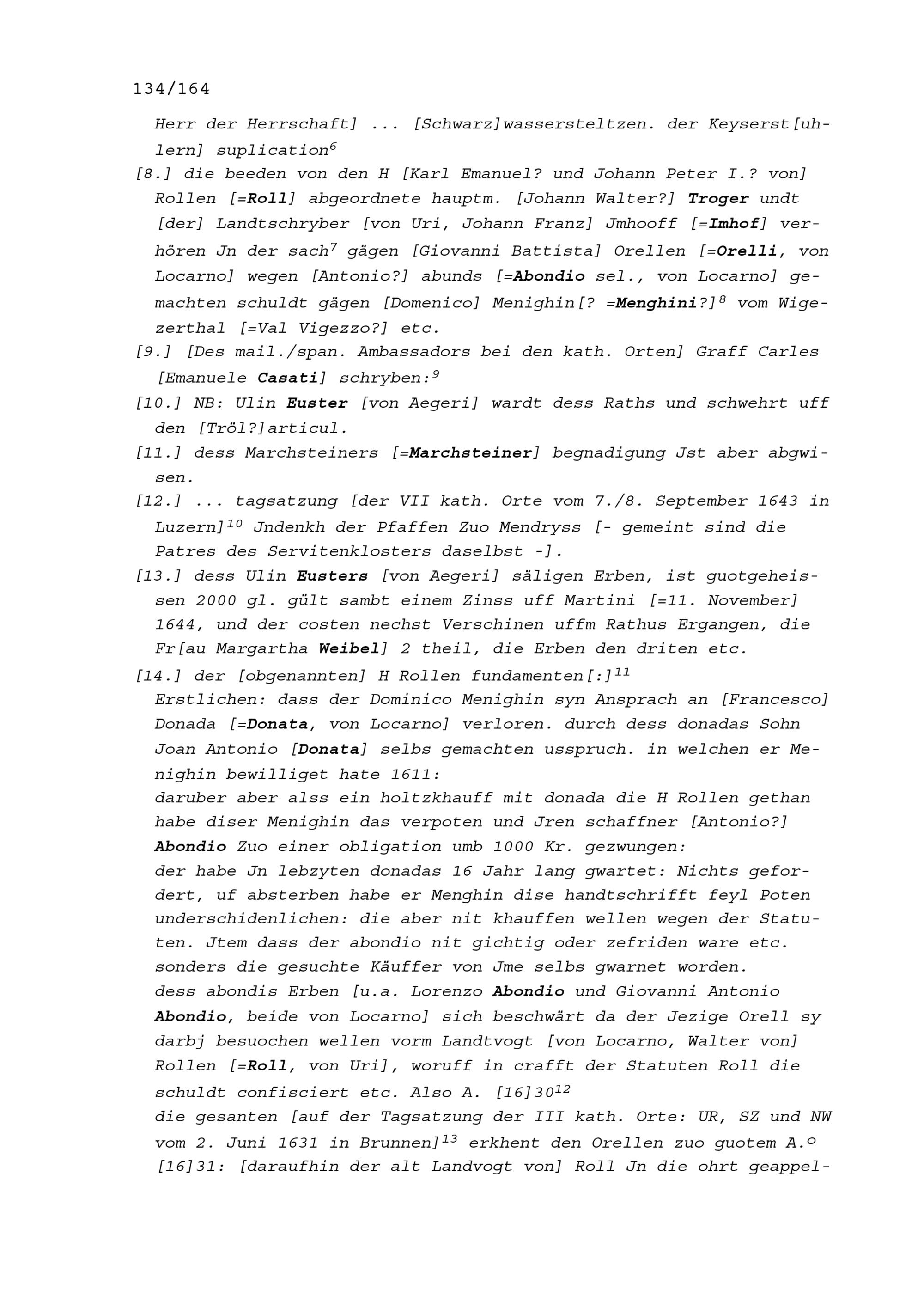 Notiz von Beat II. Zurlauben, Ammann von Stadt und Amt Zug, über die Sitzung des Stadt- und Amtrats vom 2. September 1643