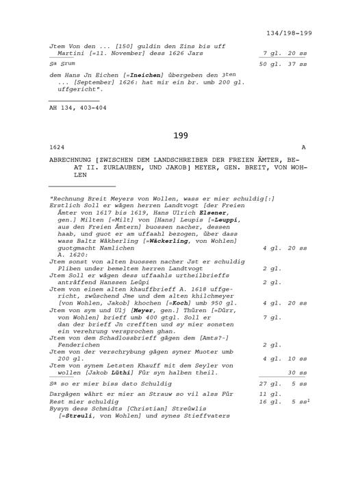 Abrechnung zwischen Beat II. Zurlauben, Landschreiber der Freien Ämter, und Jakob Meyer, genannt Breit, von Wohlen
