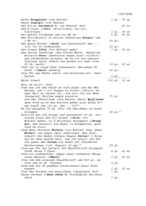 Abrechnung von Beat II. Zurlauben, Landschreiber der Freien Ämter, mit Jakob Meyer, von Hembrunn und Wohlen, genannt Breit