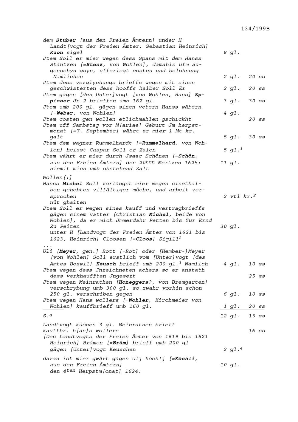Abrechnung zwischen Beat II. Zurlauben, Landschreiber der Freien Ämter, und verschiedenen Schuldnern