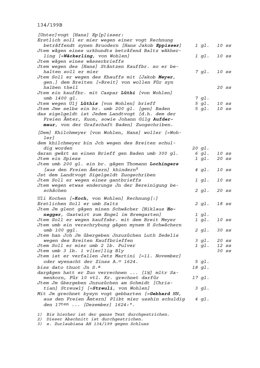 Abrechnung zwischen Beat II. Zurlauben, Landschreiber der Freien Ämter, und verschiedenen Schuldnern