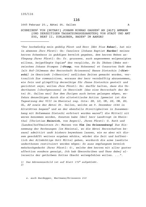 Schreiben von Johann Konrad Gasser, Notar, an Beat II. Zurlauben, Altammann und Tagsatzungsgesandter...