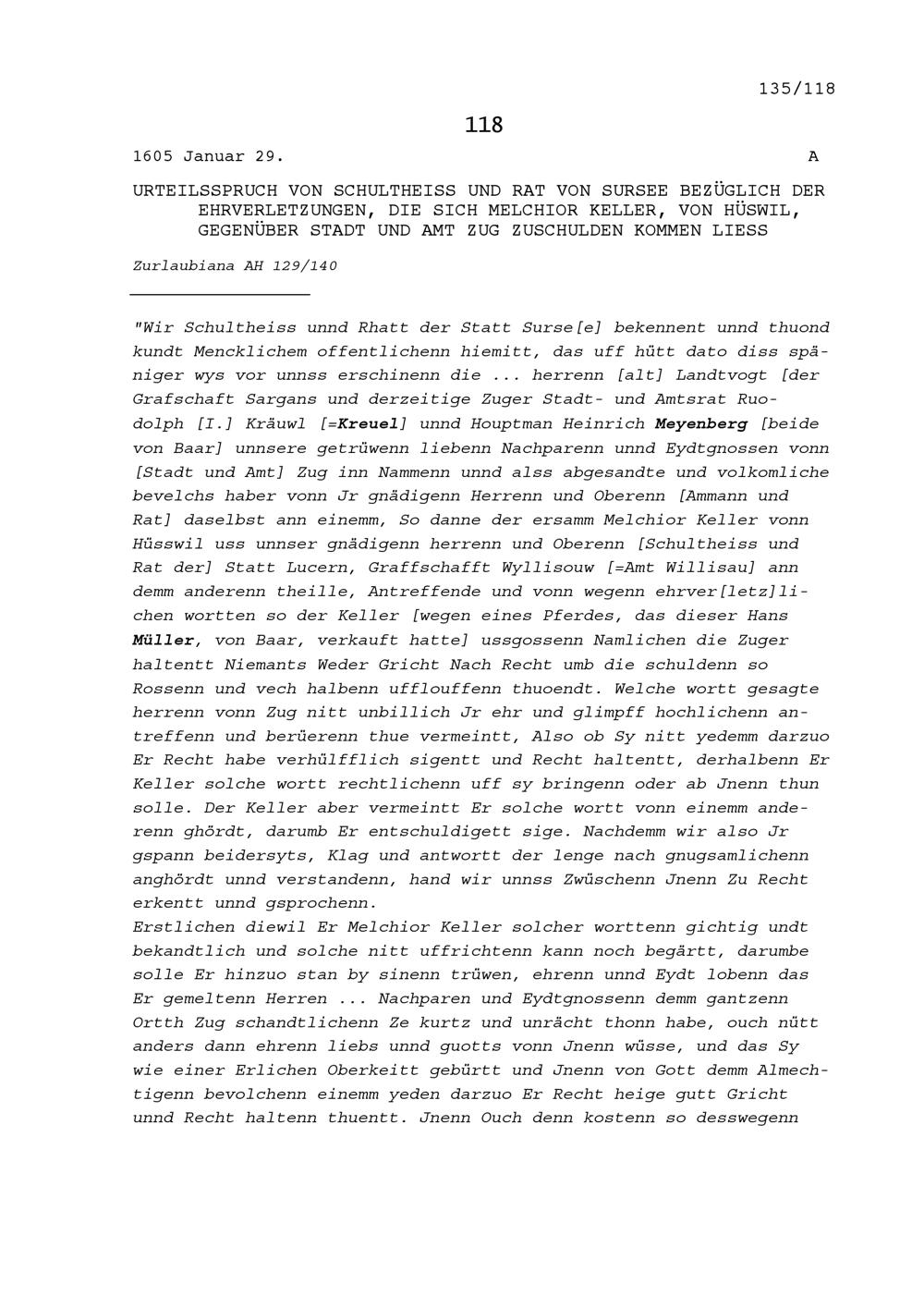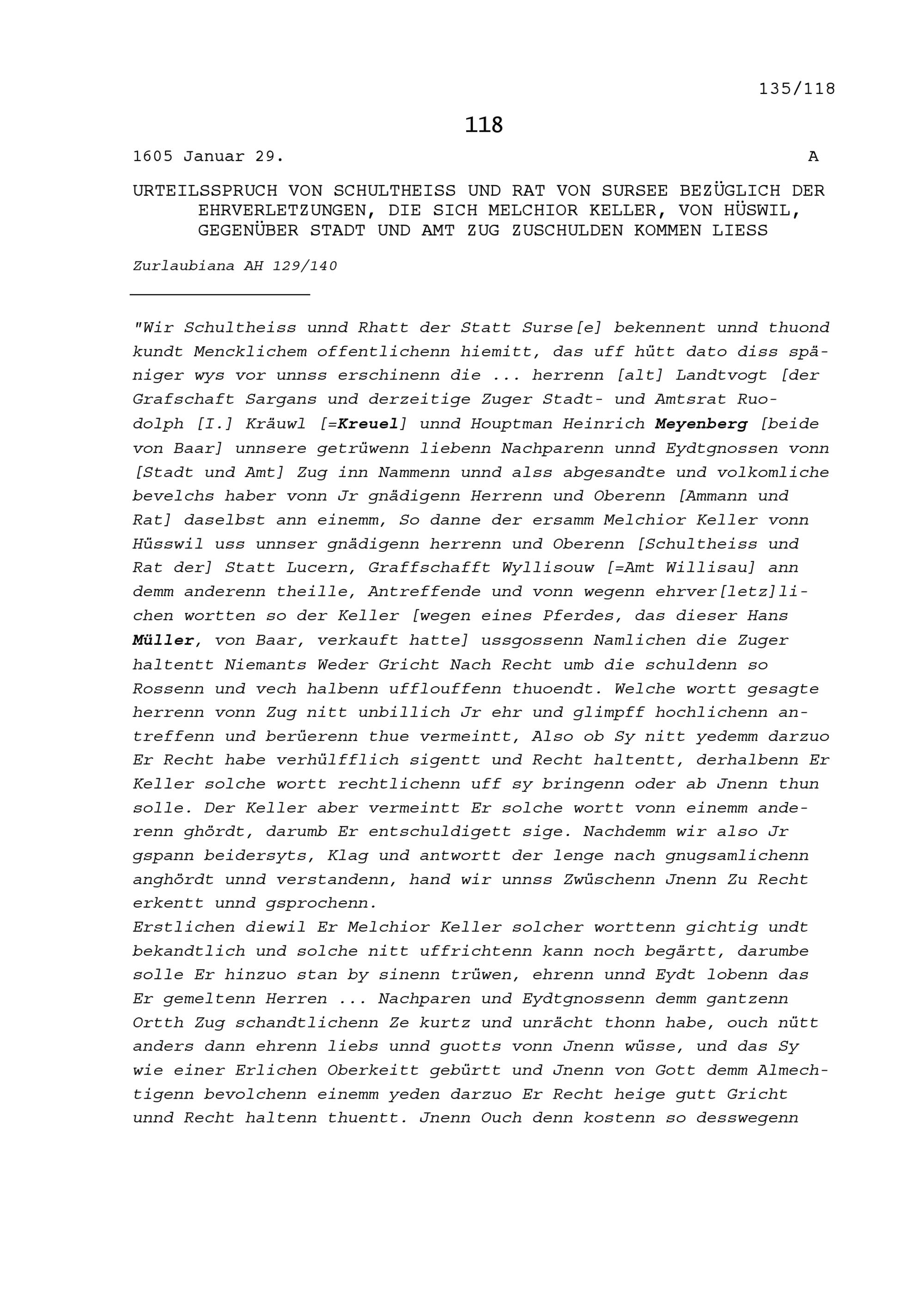 Urteil des Schultheiss und Rats von Sursee bezüglich der Ehrverletzungen, die sich Melchior Keller, von Hüswil, gegenüber Stadt und Amt Zug zu schulden kommen liess
