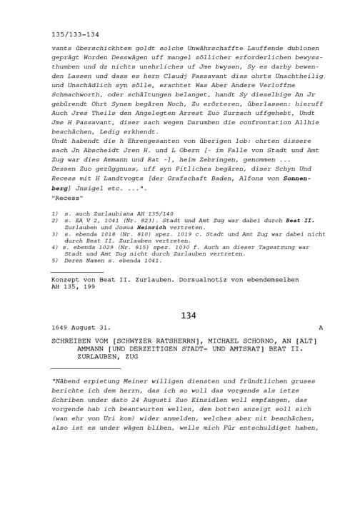 Schreiben von Michael Schorno, Ratsherr Schwyz, an Beat II. Zurlauben, Altammann und Stadt- und Amtrat, Zug