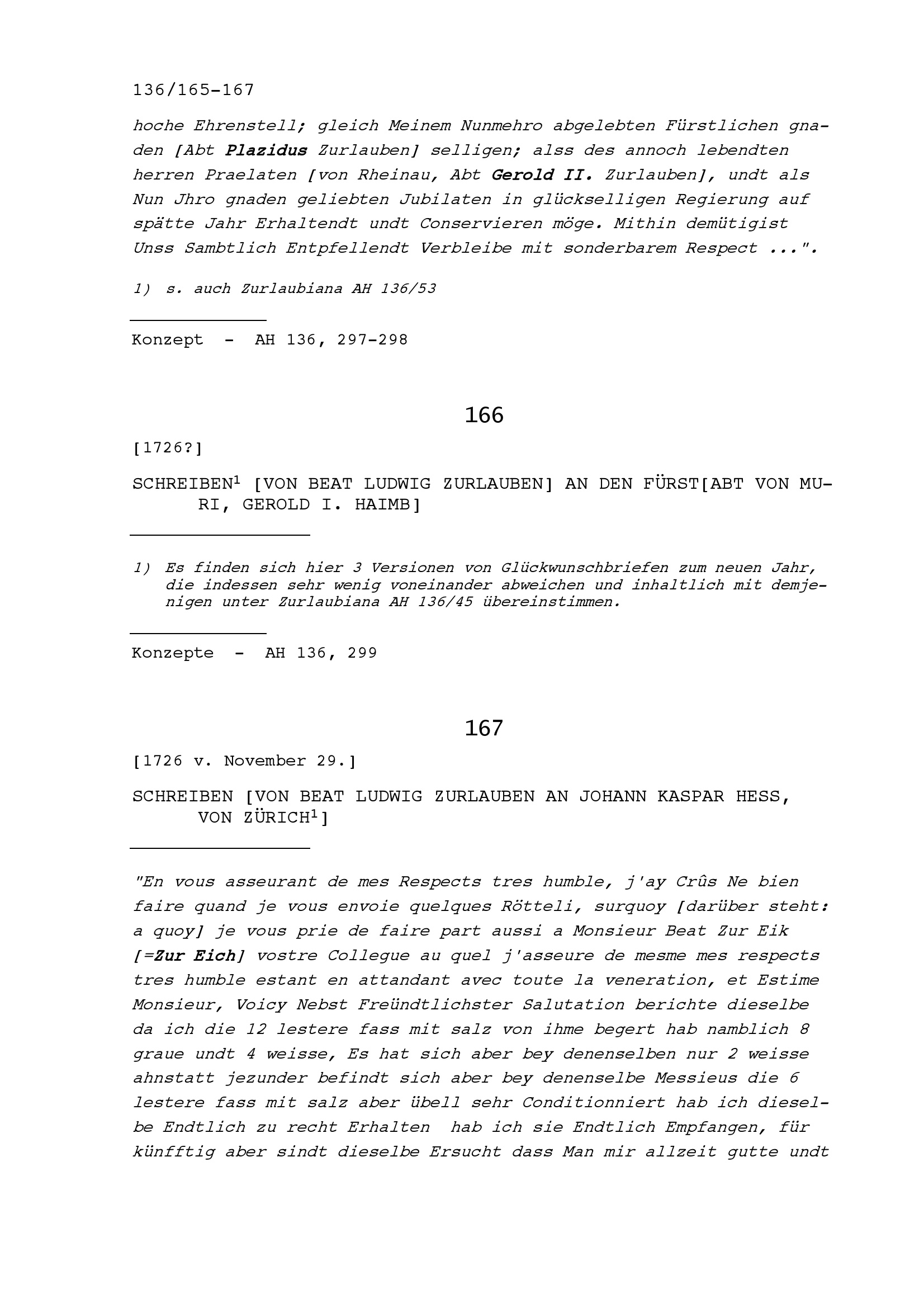 Schreiben von Beat Ludwig Zurlauben an Gerold I. Haimb, Fürstabt von Muri