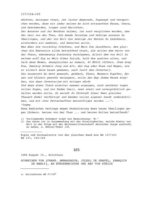 Schreiben von Jules de Gravel, Marquis de Marly, Ambassador von Frankreich, an Bürgermeister und Rat Zürich