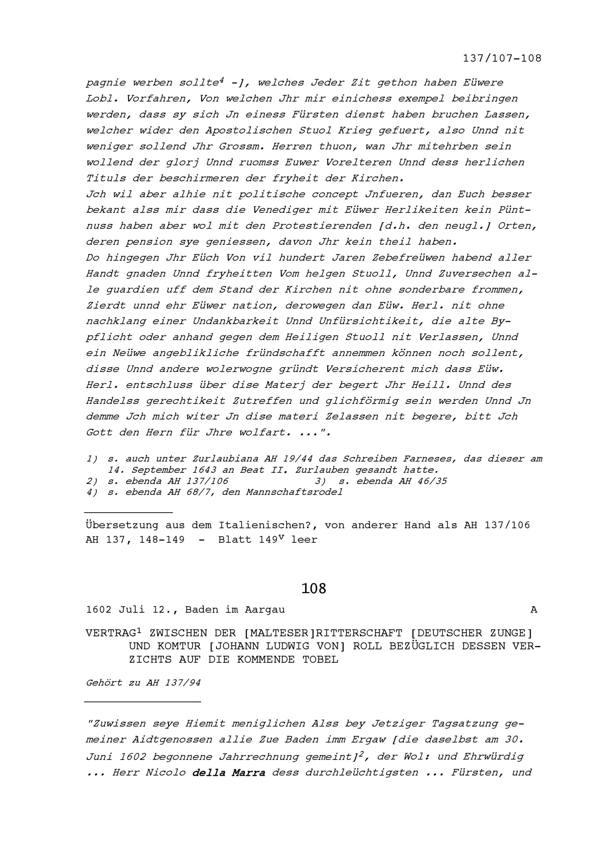 Vertrag zwischen der Malteserritterschaft deutscher Zungen und Johann Ludwig von Roll, Komtur von Leuggern, bezüglich dessen Verzichts auf die Kommende Tobel