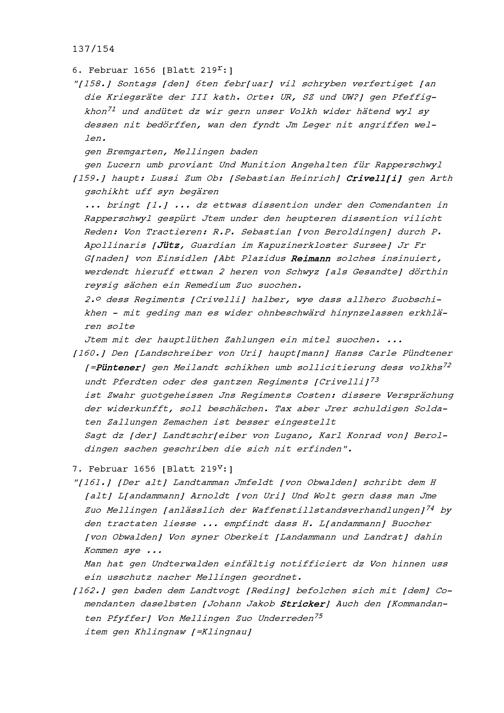 Notizen von Beat II. Zurlauben, Stadt- und Amtrat Zug und Kriegsrat, zum Artherhandel von 1655, zum Villmergerkrieg von 1656 sowie zu den Friedensverhandlungen