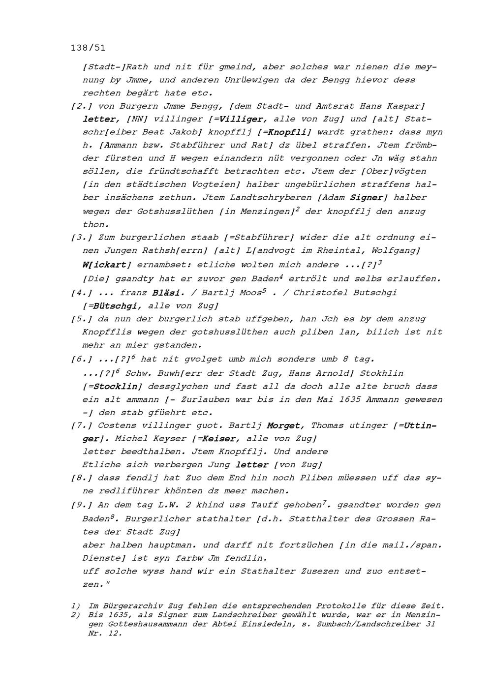 Notiz von Beat II. Zurlauben, Stadt- und Amtrat Zug, über die Gemeindeversammlung vom 13. Mai 1635