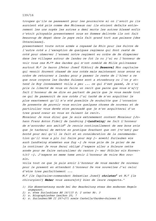 Schreiben von NN Stürler, von Bern oder Solothurn, an Beat Fidel Zurlauben, Gardehauptmann