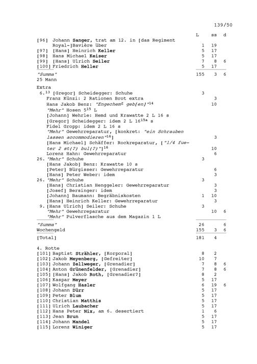 Mannschaftsrodel der Kompanie von Beat Jakob II. Zurlauben, Hauptmann im Regiment Pfyffer in französischen Diensten