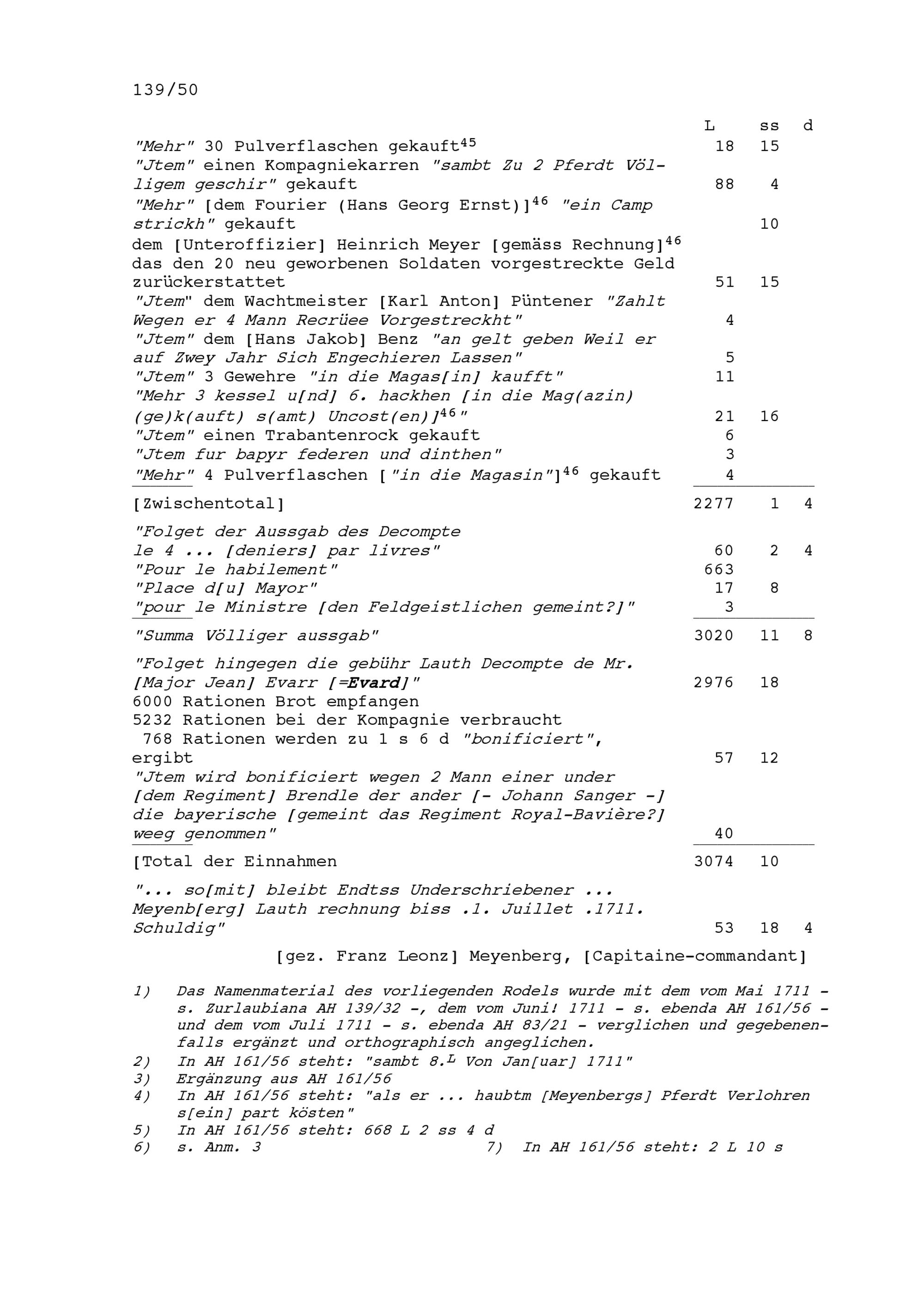 Mannschaftsrodel der Kompanie von Beat Jakob II. Zurlauben, Hauptmann im Regiment Pfyffer in französischen Diensten