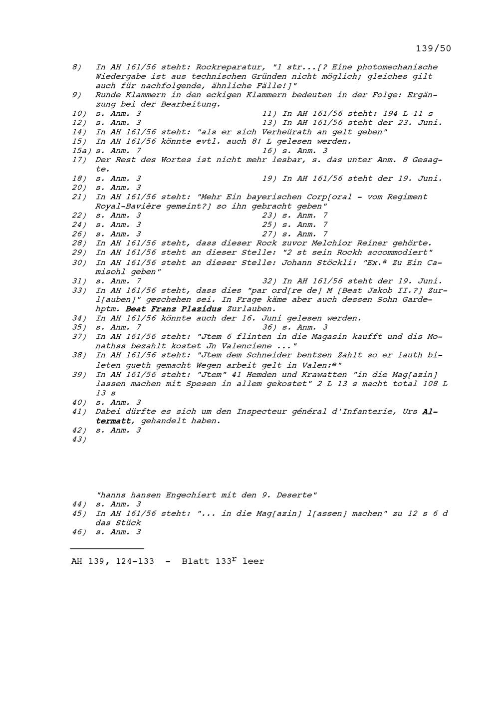Mannschaftsrodel der Kompanie von Beat Jakob II. Zurlauben, Hauptmann im Regiment Pfyffer in französischen Diensten