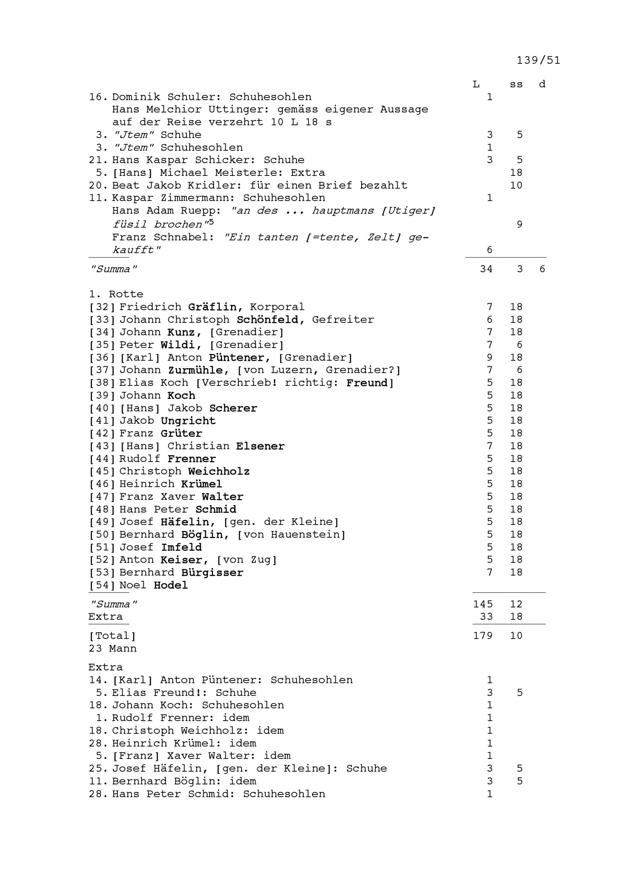 Mannschaftsrodel der Kompanie von Beat Jakob II. Zurlauben, Hauptmann im Regiment...