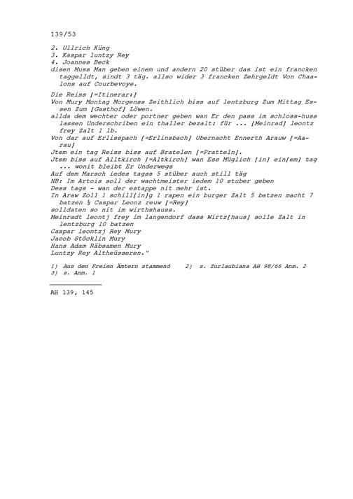 Bericht über die Soldaten, die mit Hans Kaspar Schreiber, Leutnant, am 4. Februar 1715 von Muri verreist 1715, geworbenen in den Freien Ämter für die Halbkompanie von Felix Oswald Kolin beziehungsweise für die Gardekompanie von Beat Franz Plazidus Zurlauben, beide in französischen Diensten, aufgezeichnet von Beat Jakob II. Zurlauben, Ammann von Stadt und Amt Zug
