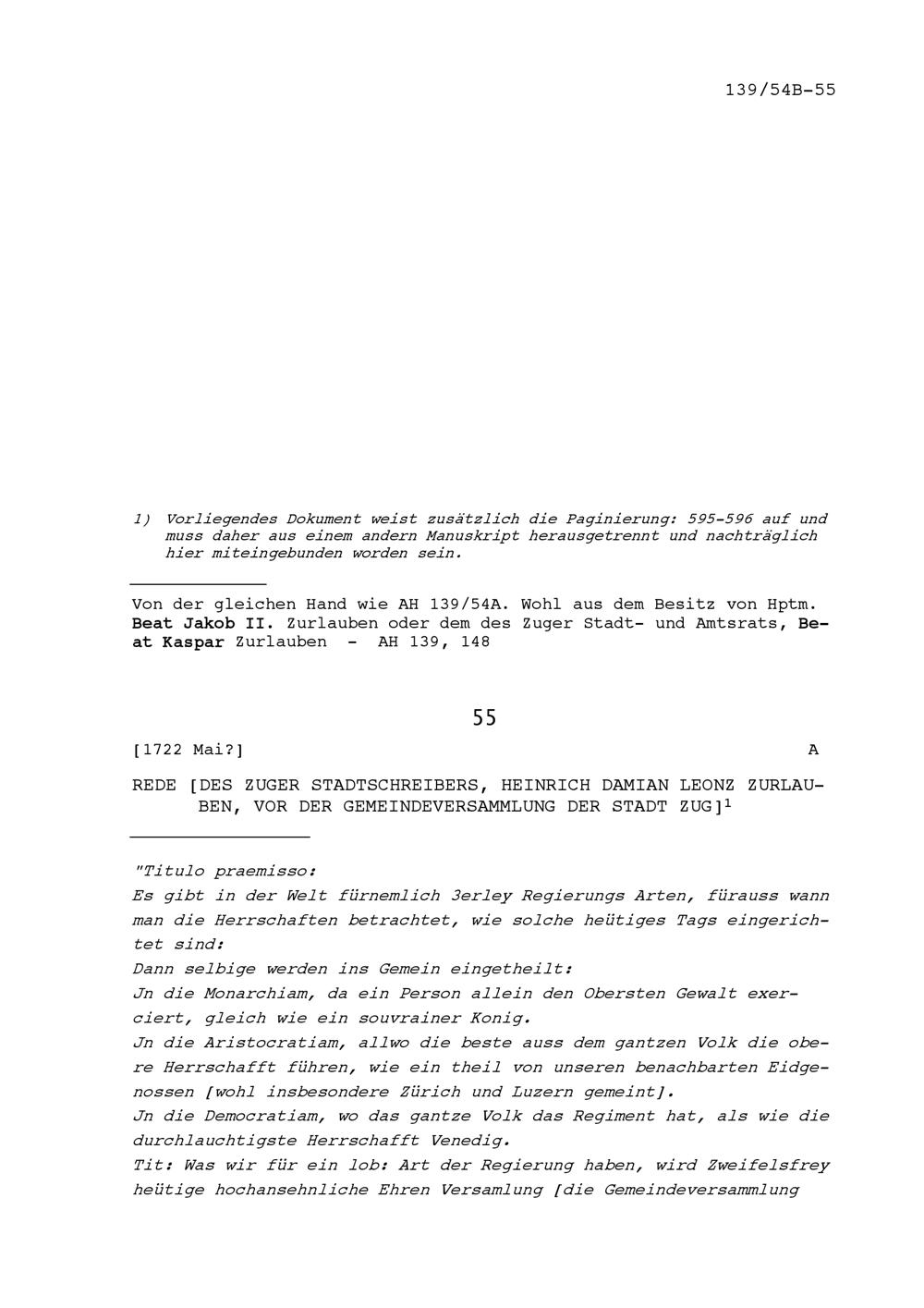 Rede von Heinrich Damian Leonz Zurlauben, Zuger Stadtschreiber, vor der Gemeindeversammlung der Stadt Zug