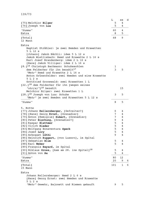 Mannschaftsrodel der Kompanie von Beat Jakob II. Zurlauben, Hauptmann im Regiment...