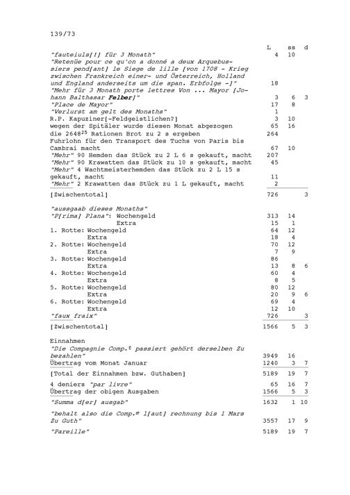 Mannschaftsrodel der Kompanie von Beat Jakob II. Zurlauben, Hauptmann im Regiment Pfyffer in französischen Diensten, aufgezeichnet von Hans Kaspar Schreiber, Fähnrich, Cambrai"