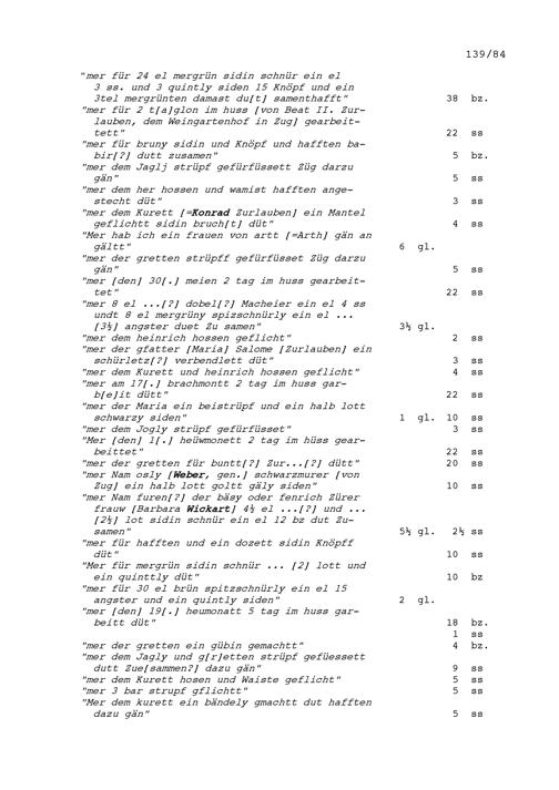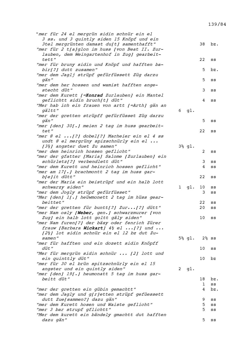 Rechnung für Beat II. Zurlauben, Ammann von Stadt und Amt Zug, ausgestellt von Hans Schley, genannt Buck, Zuger Schneider und Tuchhändler