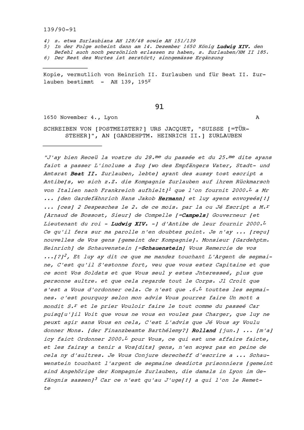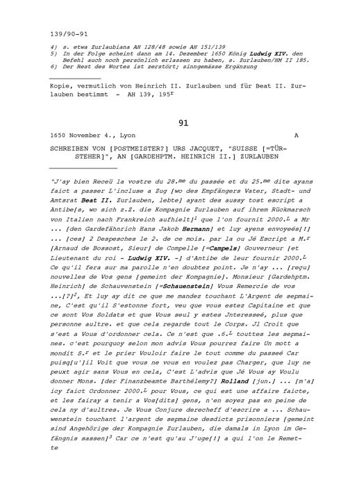 Schreiben von Urs Jacquet, Postmeister, an Heinrich II. Zurlauben, Gardehauptmann
