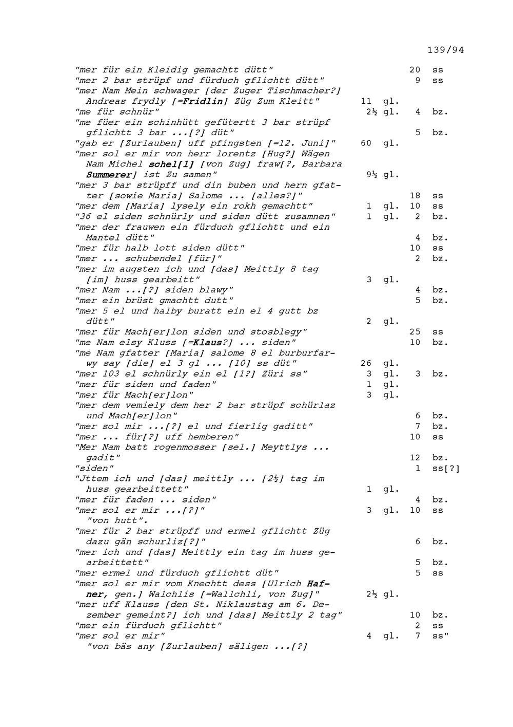 Rechnung für Beat II. Zurlauben, Altammann und Stadt- und Amtrat Zug, ausgestellt von Hans Schley, genannt Buck, Zuger Schneider und Tuchhändler