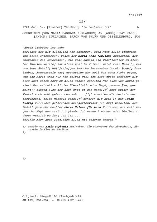 Schreiben von Maria Barbara Zurlauben an Beat Jakob Anton Zurlauben, Priester, Zug