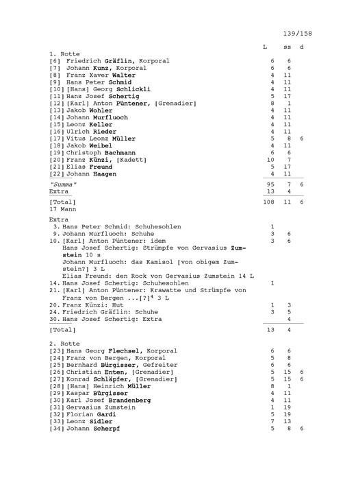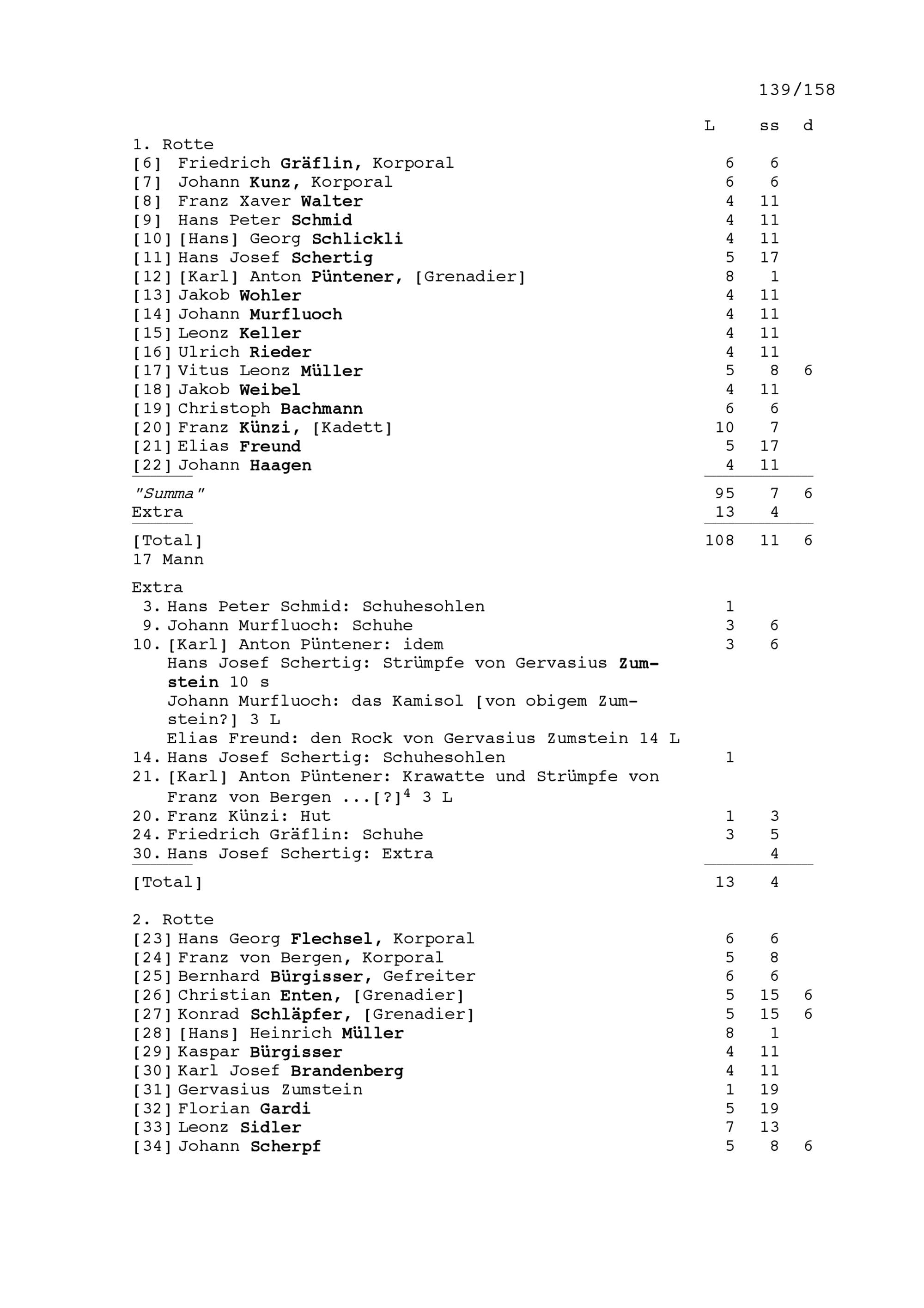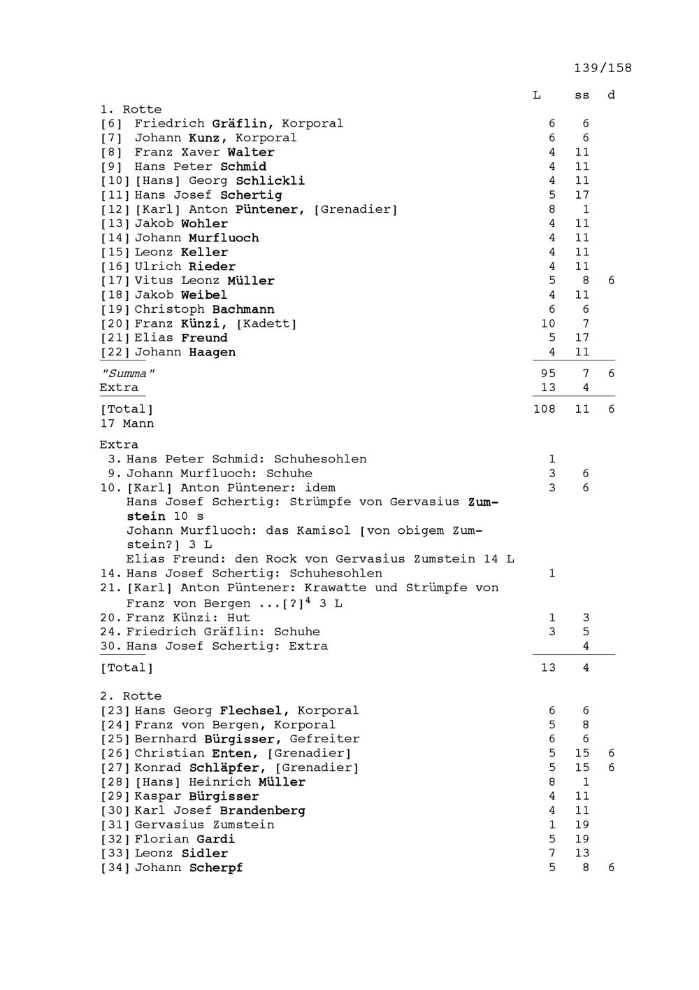Mannschafts- und Soldrodel der Kompanie von Beat Jakob II. Zurlauben, Hauptmann im...