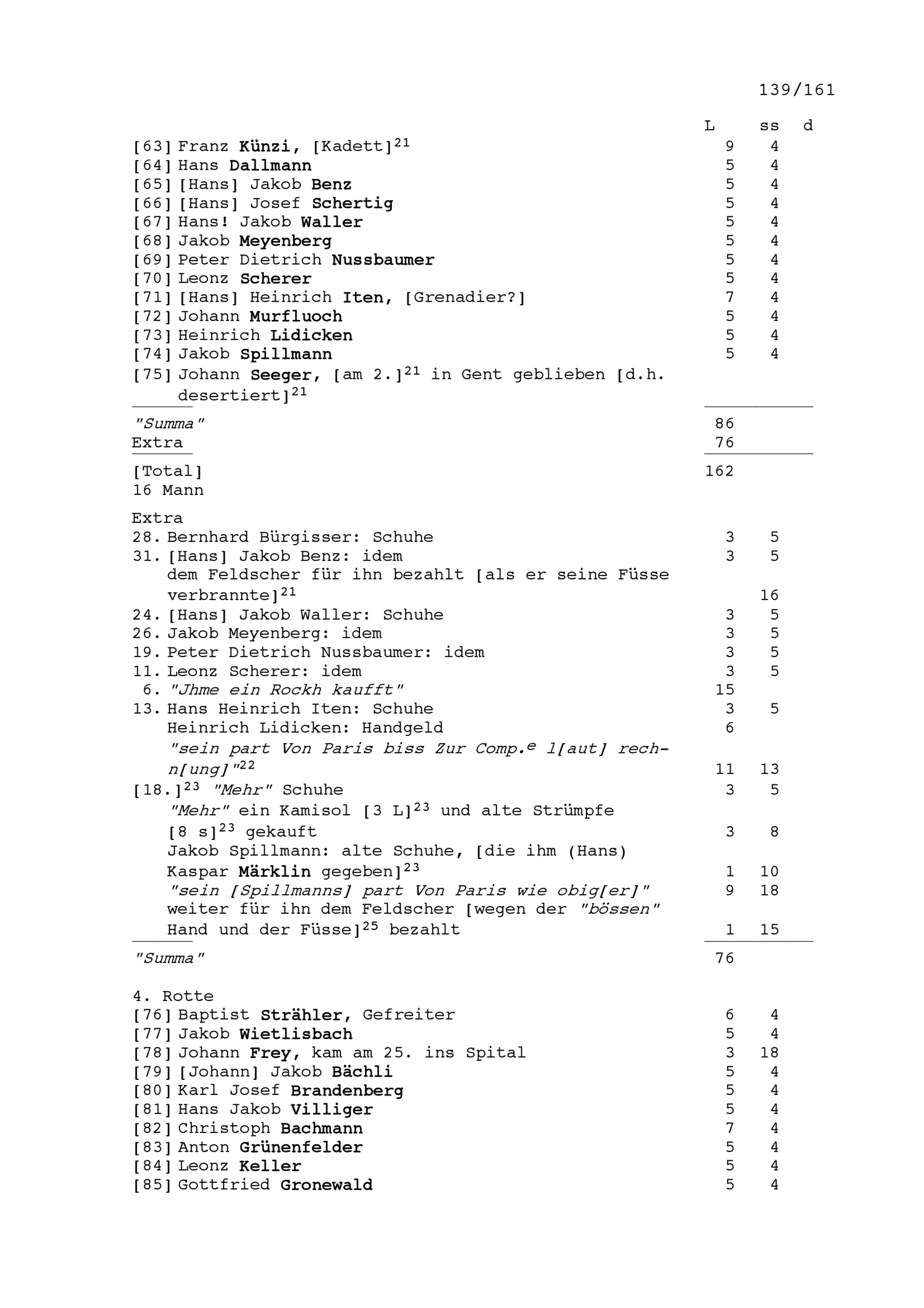 Mannschafts- und Soldrodel der Kompanie von Beat Jakob II. Zurlauben, Hauptmann im...