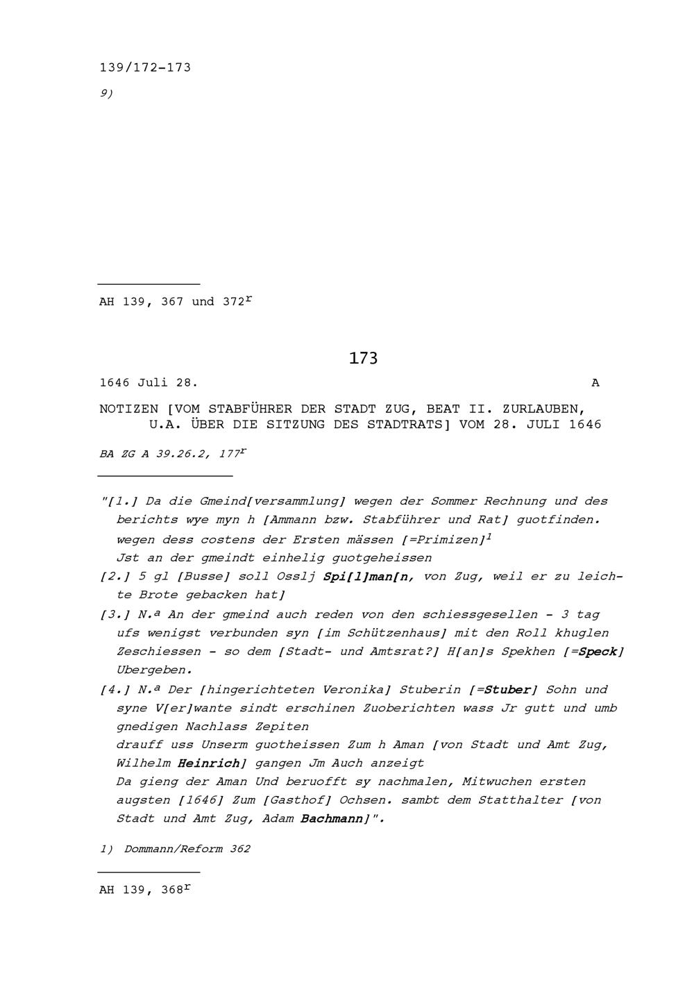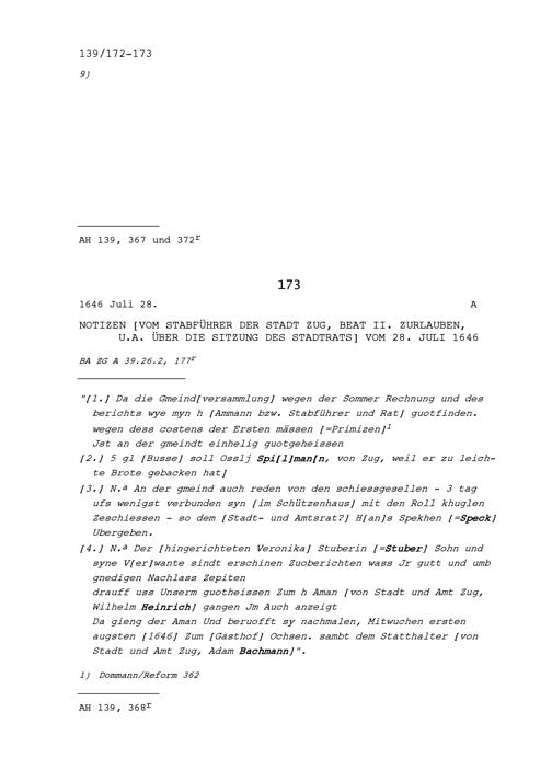 Notiz von Beat II. Zurlauben, Stabführer der Stadt Zug, unter anderem über die Sitzung des Stadtrats vom 28. Juli 1646