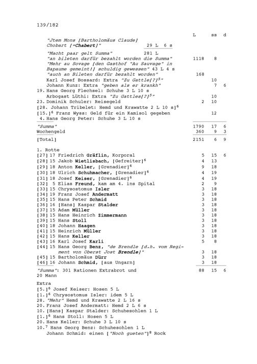 Mannschafts- und Soldrodel der Kompanie von Beat Jakob II. Zurlauben, Hauptmann im...